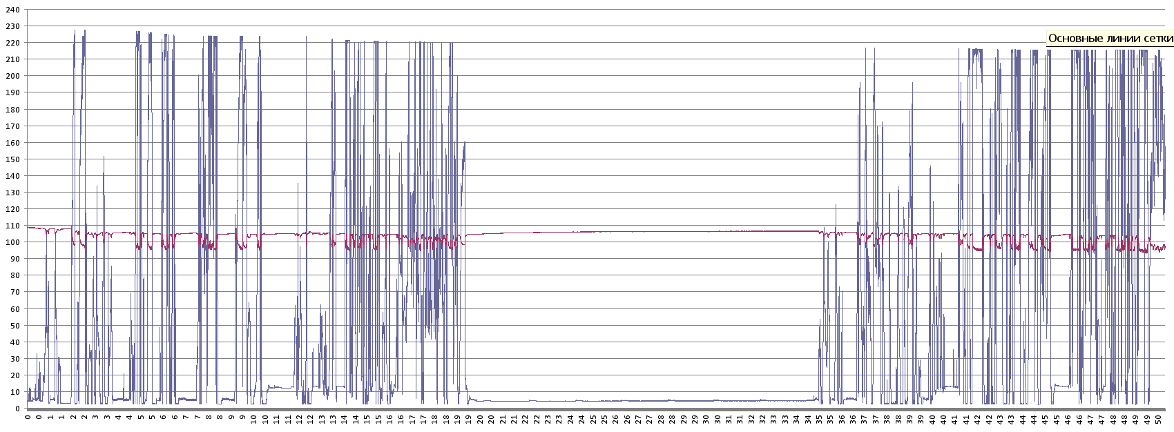 Это модель езды такси. Так сказать без какой-либо экономии. По ней можете определить период разгона и торможения. Синяя - ток, красная - напряжение. По абсциссе минуты.