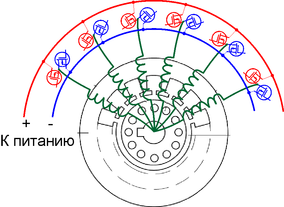 Предлагаю сделать многофазный двигатель так: (коллекторник навыворот)