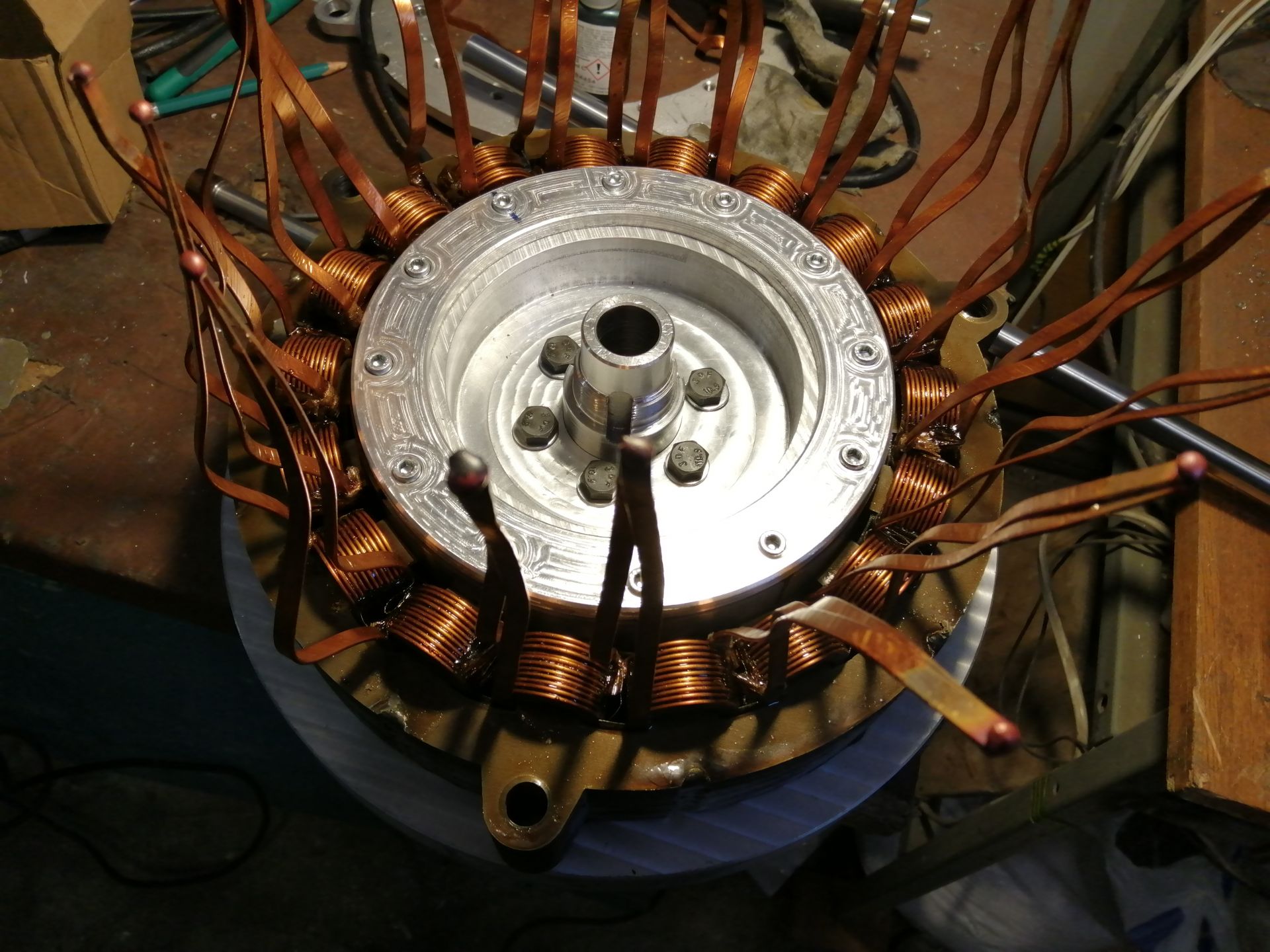 Кстати, этот движок можно закручивать обычным преобразователем частоты для асинхронника. Сейчас заумные преобразователи для этого делают а поначалу так и использовали.