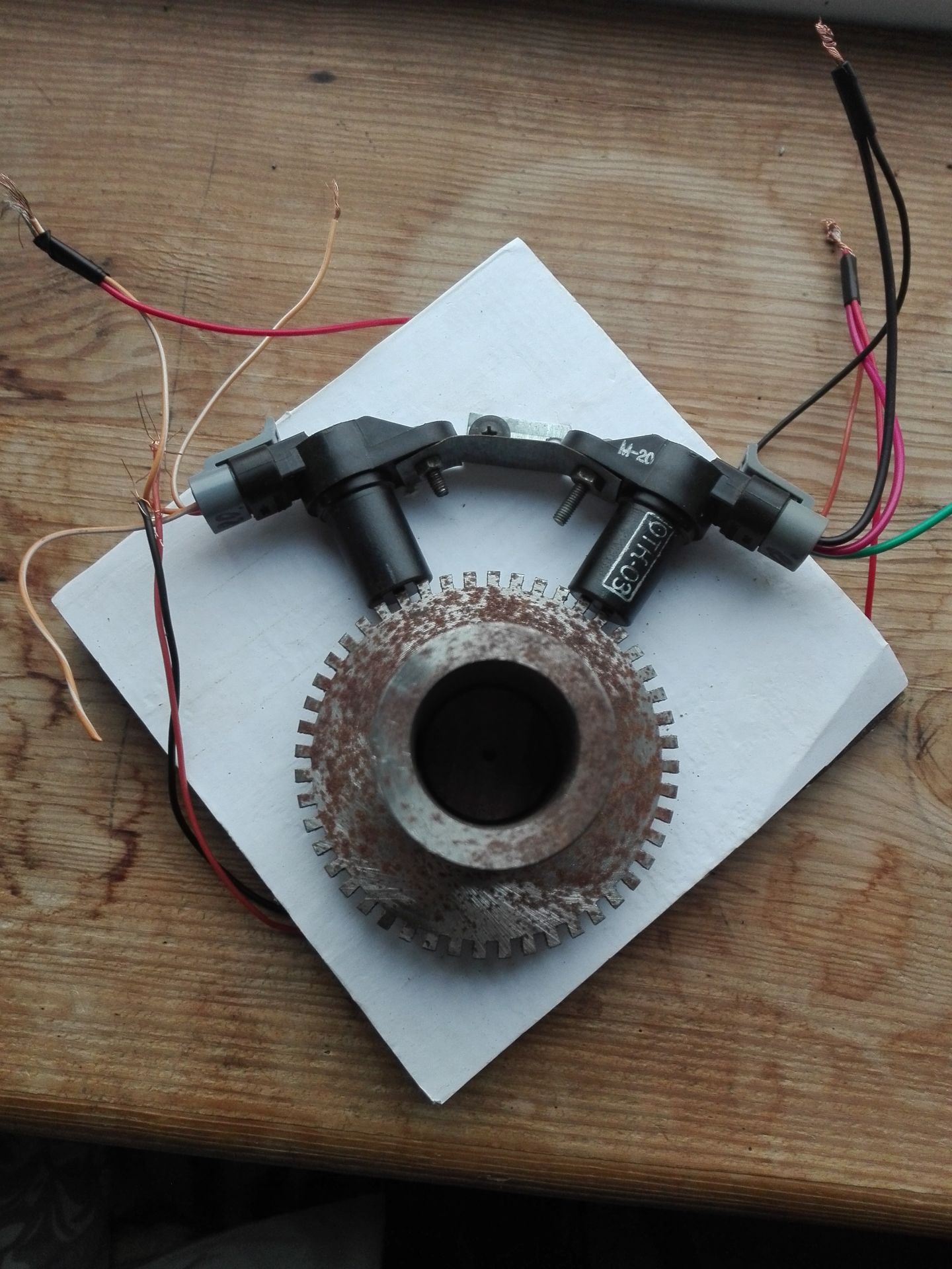 Сам принцип з двома сенсорами робочий, особисто перевіряв на Келлі. Складність у механічній частині і налаштуванні кута зсуву між каналами. Осцилограф у поміч.