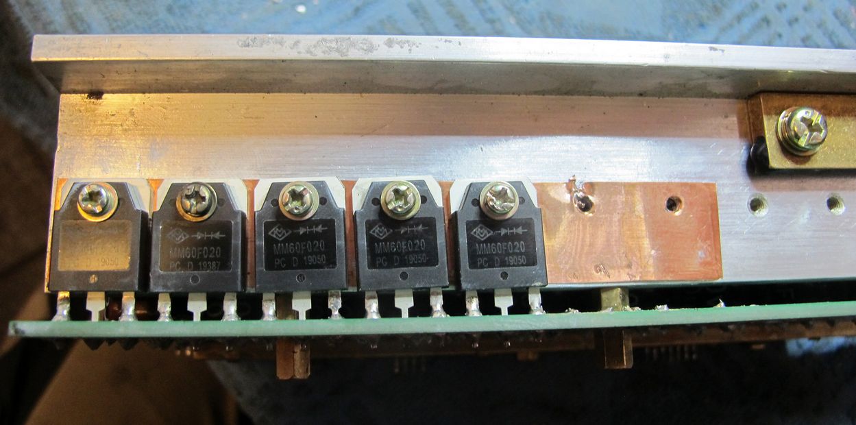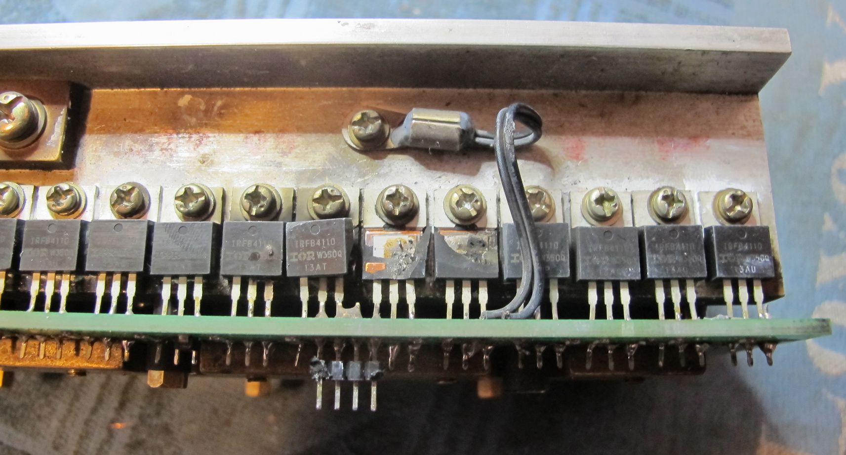 Феты IRFB4110 на Вашем фото похожи на поддельные, в частности отсутствуют полукруглые вырезы справа и слева от крепежного отверстия. Вот ссылка на даташит, внизу форма корпуса http://www.infineon.com/dgdl/irfb4110pb ... 15a9571e0b