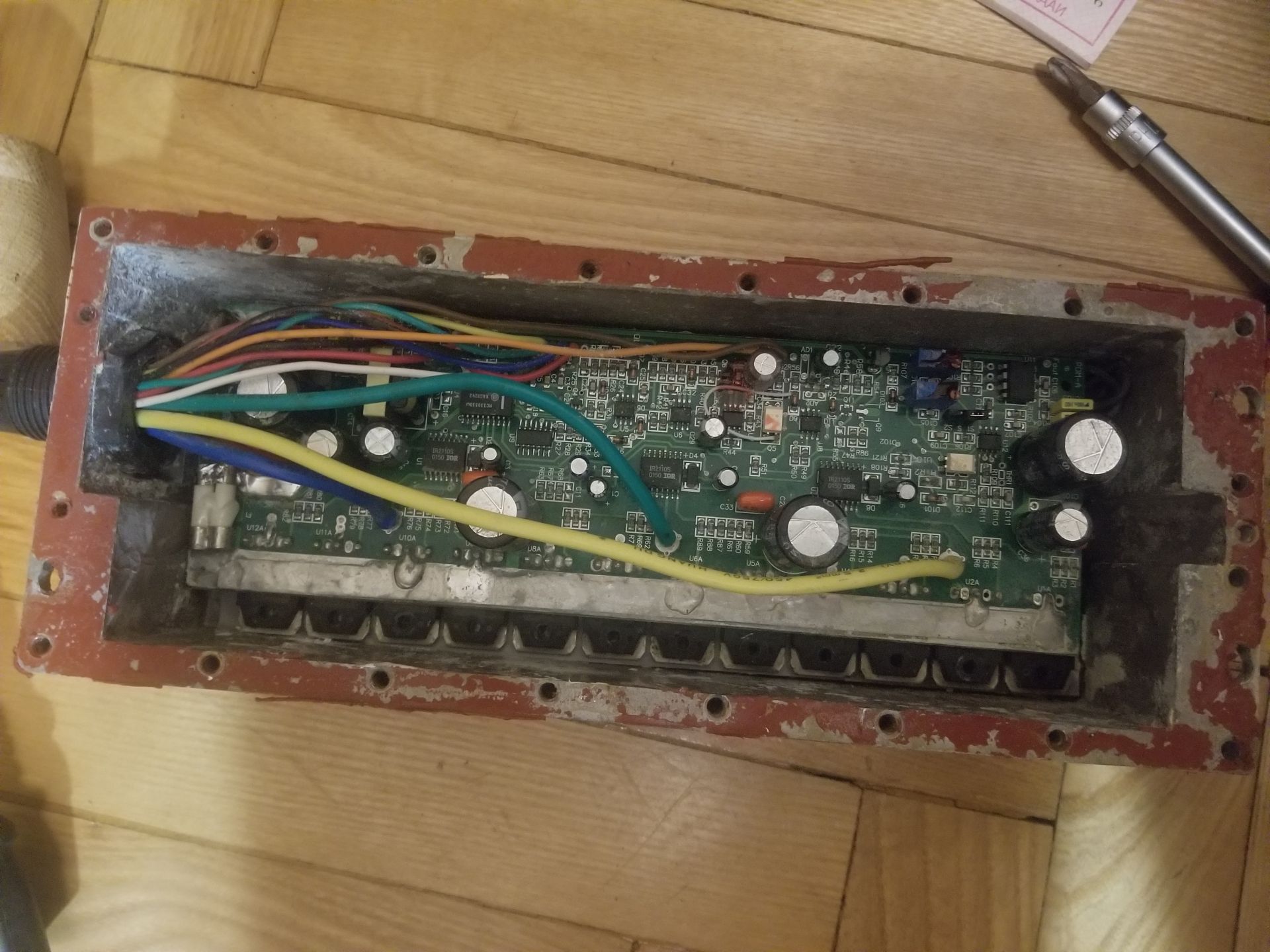 Прошу помощи новичку в электротранспорте. Переделываю старый хонда такт в электро, купил для этого набор контроллера и колеса, якобы с разборки из германии (на олх из полтавы). Год спустя (наконец-то) спаял аккум (16s lifepo4), но стал вопрос с контроллером. Я его разобрал, на фото видно подгорелость одного транзистора. Контроллер не работает, прошу опознать, поделится (если есть) схемой или контактом и предложением по ремонту его.