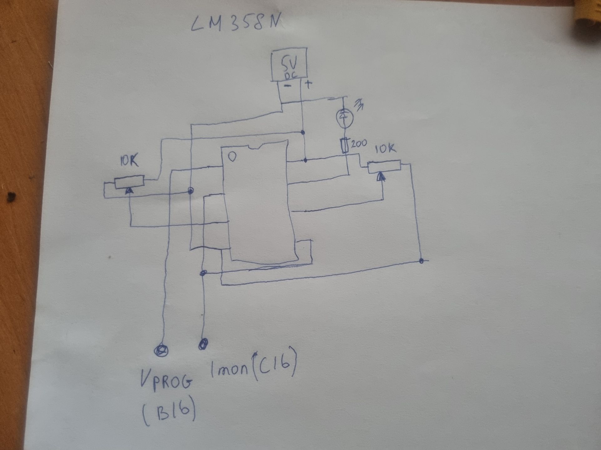 Здесь разобрался, d19-c19 через резистор- запуск. С19 на минус lm, b16 программирование напряжения, на первую ножку lm , с16 мониторинг тока , на вторую ногу lm. С третей ноги на ползунок резистора, четвертая минус 5в, пятая плюс 5в. Но результат как на видео.