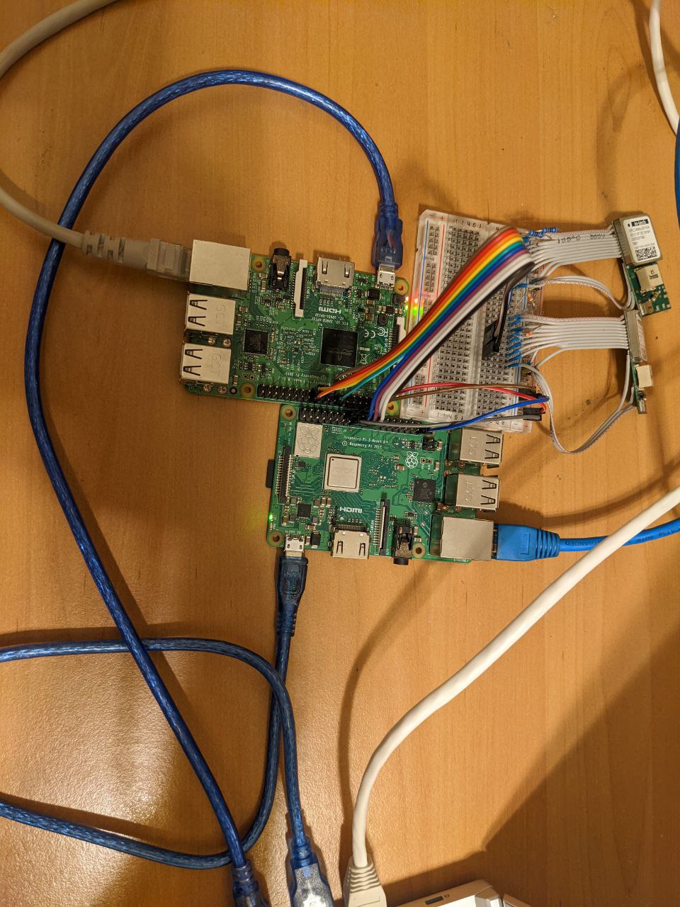 Итого минимальный стенд получился просто 2 модуля по SPI без ничего лишнего. Пока подкинул их на RaspberryPi, поскольку дрова есть и если бы что не работало, то точно через кривые руки подключения. Выглядит так: