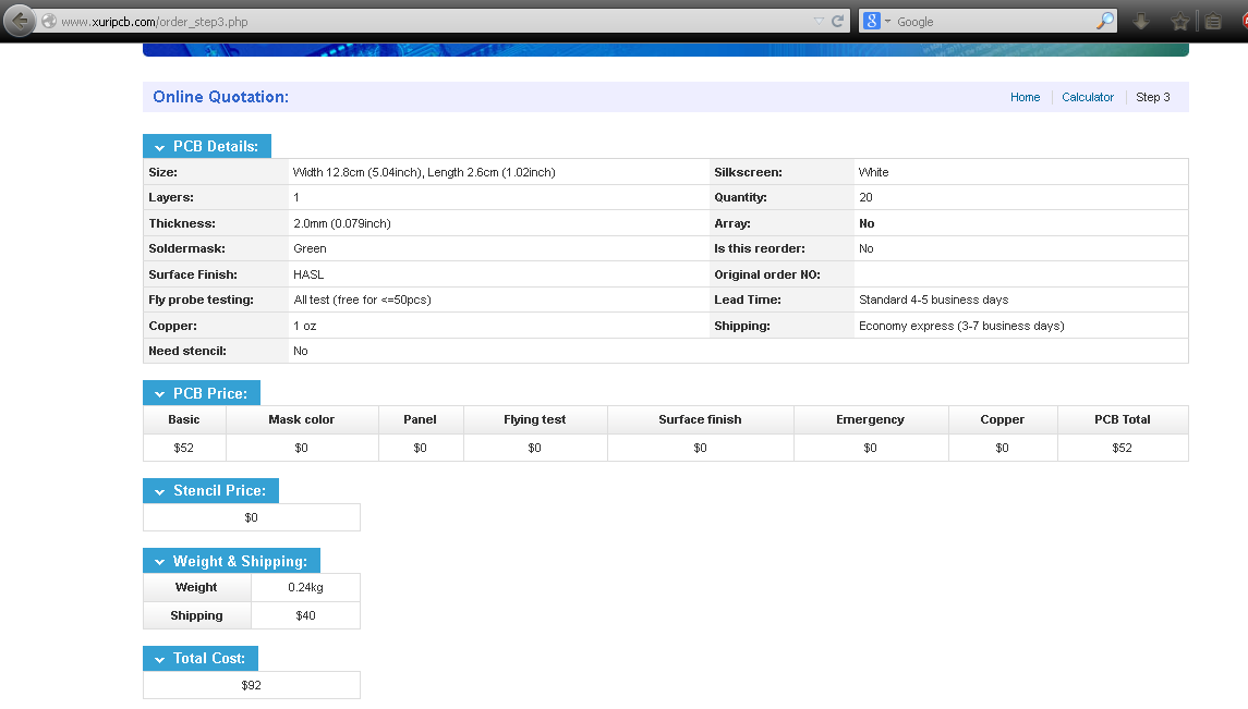 - сделал расчет стоимости платы в Китае 20шт (картинку приложил)