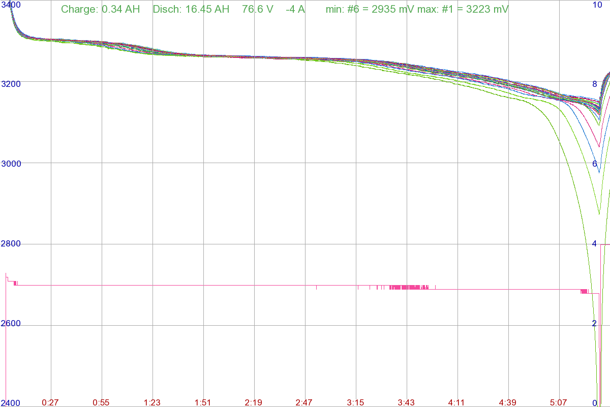 Якось я вирішив з допомогою своєї смарт бмс (поки що недокументована функція) побудувати графік розряду моєї старенької ліферної збірки, щоби визначити, як веде себе кожна комірка. Звісно, відсічка відбулась по самій дохлій комірці. А сьогодні, ще раз глянувши на графіки розряду, виникла ідея зробити деяке приблизне математичне прогнозування ємності решти комірок, щоби робити висновки - міняти окремі елементи, чи "ще походить". От тільки в голову не приходить нічого путнього не приходить в голову.
