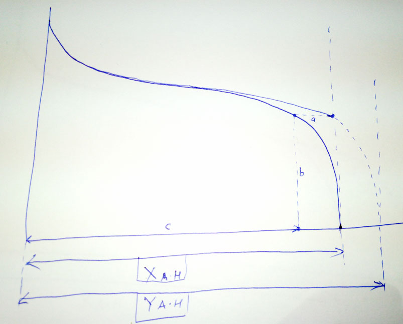 Ну і ідея полягає в тому, щоби в в момент "торкання" найслабшої комірки побудувати вертикальну опорну пряму, від цієї прямої в точці пересічення з графіком комірки, яка нас цікавить, побудувати горизонтальний відрізок "а" вліво до пересічення його з графіком найслабшої, а від цієї точки відрізок "b" вниз. Таким чином, вималювалась така формула