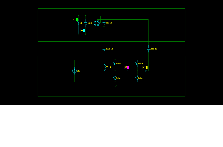 Сгладжені мережеві 310 вольт подаються на звичайний міст який комутується з частотою 100 кгц. Треба рорбити частоту куди вищу але це ускладнює схему. Да і це просто перевірка самого принципу.