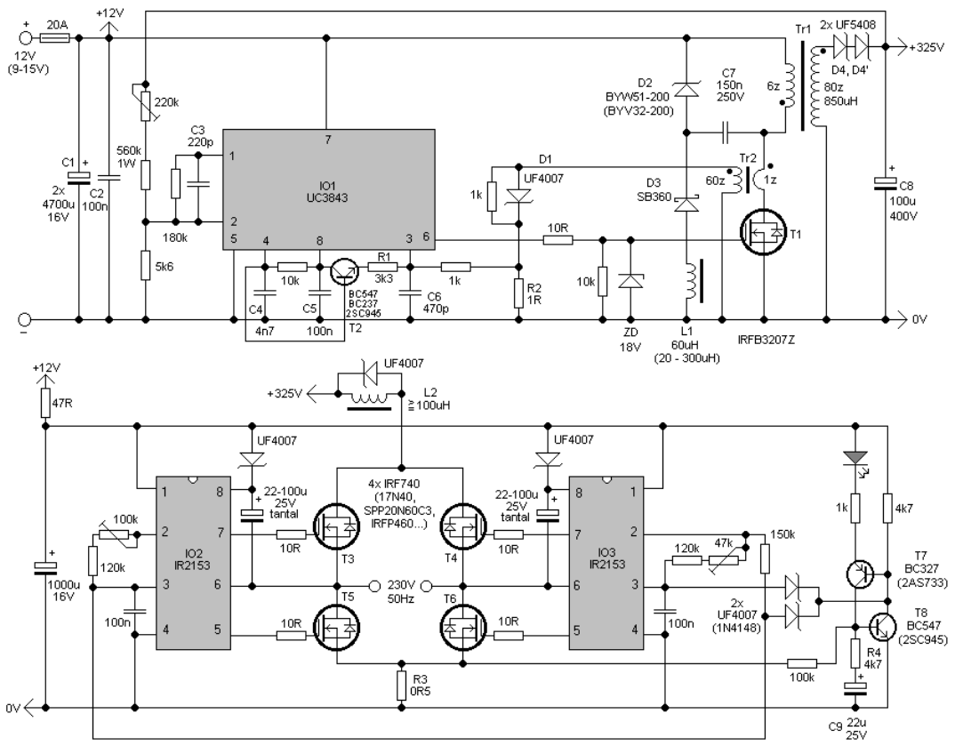 Ну так щоб не мати такого гємора з модуляцією і використовується для цього мікроконтроллер - і все стає значно простіше, і з'являються додаткові бонуси у вигляді регулювання частоти, захист по току, і т.п. А на attiny85 інвертор і на 3 фази, з регулюванням частоти, збирається без жодних проблем., тому ліпити їх на ir2153 це вже якесь середньовіччя...