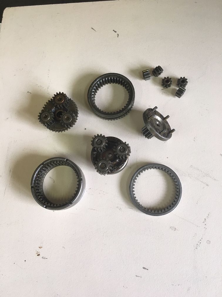 Немного доработанные короны запрессованы во-втулку. Получили сдвоенную коронную шестерню для обеих ступеней.