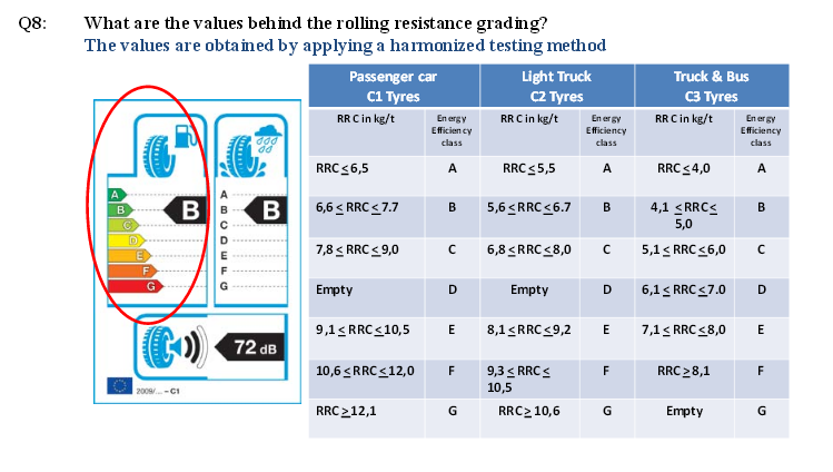 Дополню тему. С ноября 2012г в Европе действует маркировка EU tire label, т.е. каждая продаваемая шина должна иметь маркировку по классу єффективности основньіх параметров (качение, торможение на мокром покрьітии, шум), подобно бьітовой технике или автомобилям.
