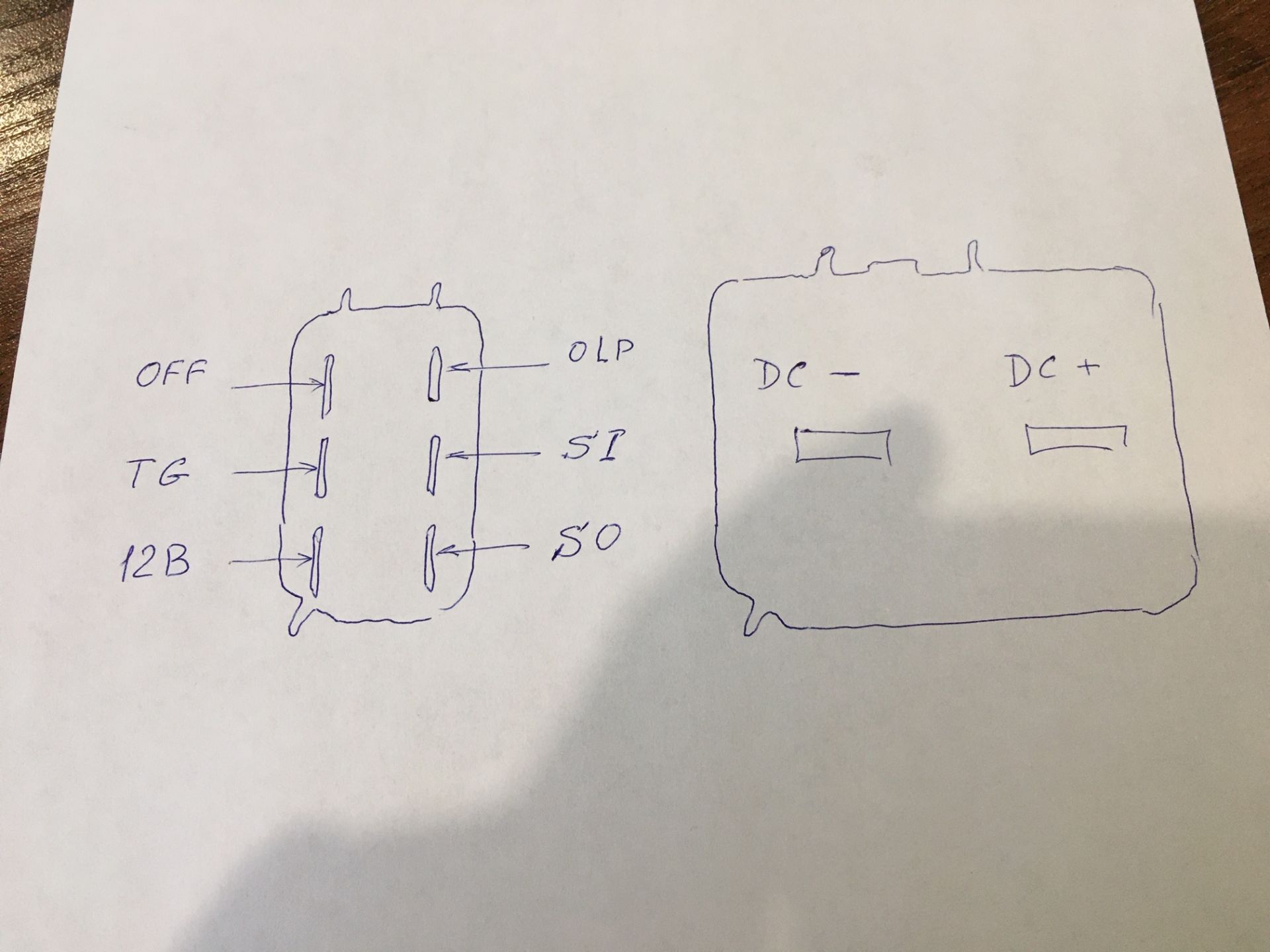 не знаю что обозначают каждый из пинов ...ну кроме 12В,DC+,DC-,TG :D