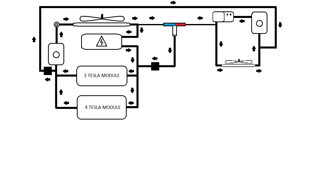 У тесла модулей внутр. диаметр патрубков 5-6мм. Думаю модули в ящиках соединять параллельно, так же как и родные NiCd блоки были, не знаю как было в тесле и что там за помпа...
