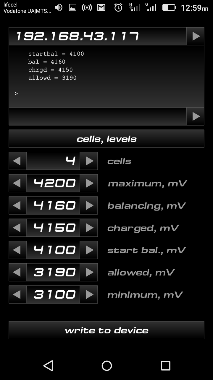 6. Открываем конфигуратор и вбиваем запомненный IP. Жмем кнопку "cells, levels" и наблюдаем в окне терминала обмен данными. Подключение успешное.