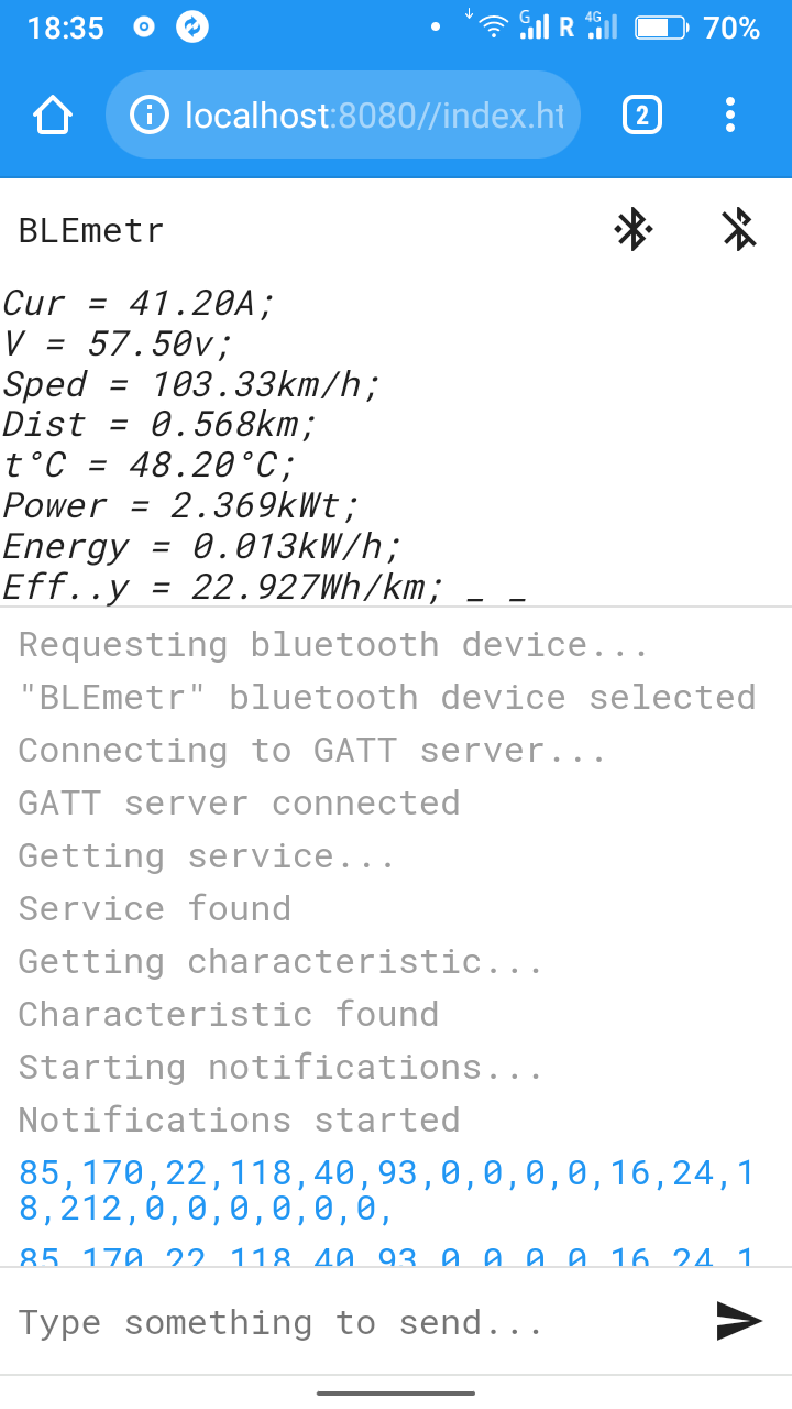 Эта терминалка расчитана на чисто текстовый обмен, т.е. выводит текст когда увидит корректный конец строки. Но поскольку мой ваттметр шурует чистые двоичные данные (для экономии, одна посылка не должна быть более 20 байт), то на экране или ничего или кракозябры.