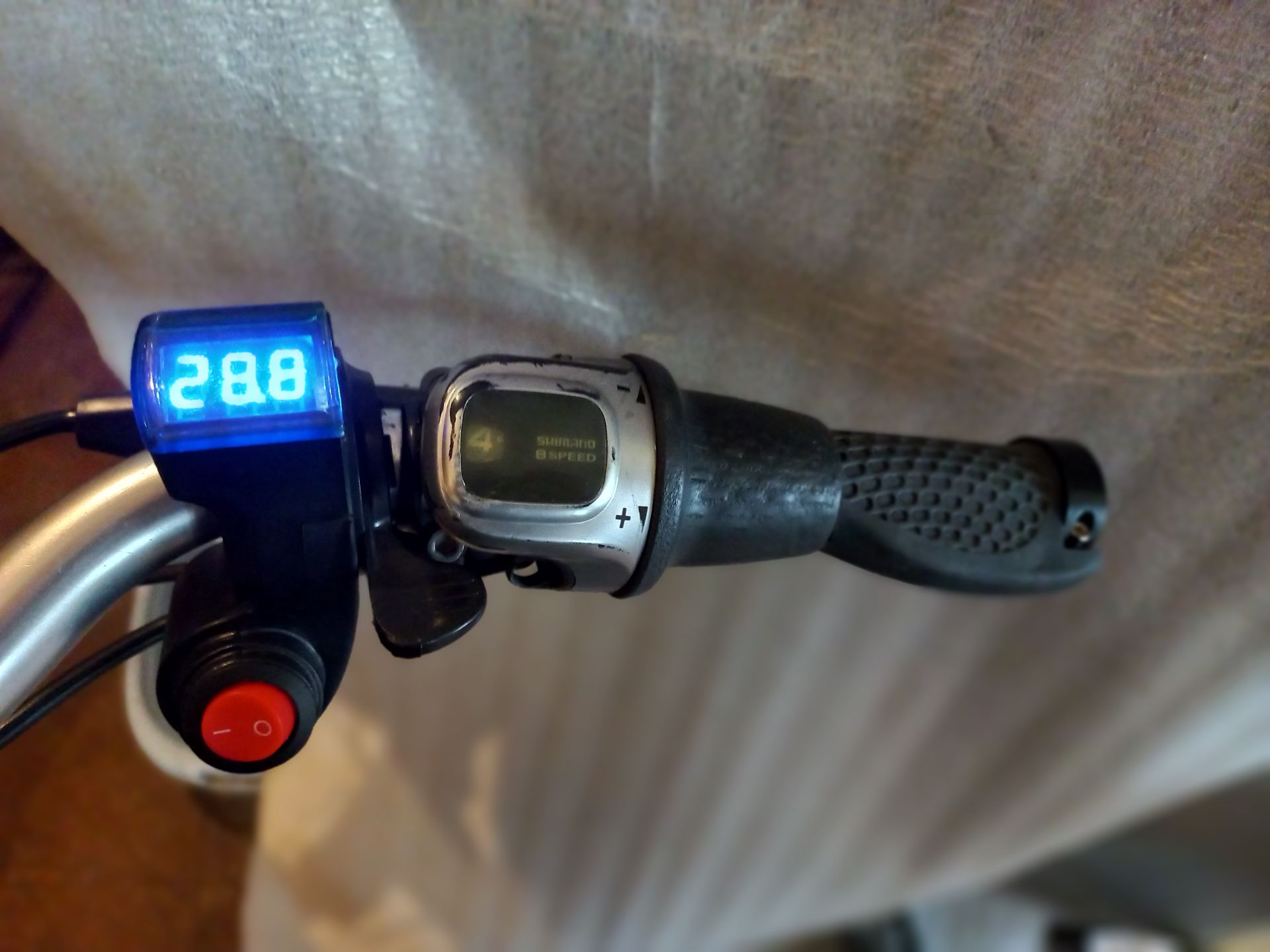 https://www.pedelecforum.de/forum/index ... 039/page-2 В сообщении 40 описан способ обмана с помощью резистора на землю. Я подумал, что меняя сопротивление резистора (или напряжение на нем) можно будет получить пропорциональное управление. Но на деле это оказалось не так. Похоже здесь этот датчик работает в бинарном режиме - при превышении порога просто включает мотор. А вот степень его помощи определяется от положения регулятора на пульте управления. Там три положения помощи педалированию. Поэтому я приделал к курку газа просто транзисторный ключ, который включает резистор на землю на нужном проводе. Вчера попробовал немного покататься. В принципе пойдет. Есть один негативный момент. У этих моторов нет датчика скорости. Похоже скорость он определяет по оборотам двигателя. По немецким законам скорость не должна превышать 25км/ч После этого он выключает помощь. Но двигатель не знает какая передача включена (у меня Shimano на 8скоростей). Поэтому наверное двигатель ограничивает максимальные обороты ориентируясь на 8 передачу. На практике это выглядит примерно так. Например трогаюсь на 1 передаче. Велосипед хорошо разгоняется и вдруг контроллер начинает ему "подрезать крылья", велосипед даже начинает замедляться. Нужно приловчиться переключать передачи до достижения этих оборотов. Или трогаться на 3-5 передаче помогая педалями. Ну и при езде на высоких передачах приходится периодически отпускать курок газа, чтобы двигатель не достиг этих критических оборотов. При включении/выключении курка газа контроллер не резко включает/выключает двигатель, а наращивает и сбавляет обороты плавно. Поэтому даже создается иллюзия, что это я плавно газую
