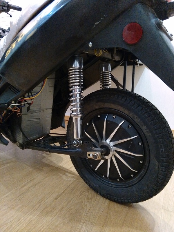 А задний маятник от какого мотоцикла? Моторколесо - вольтовский кваньшунь, у меня 2кВт 60В едет 65км/ч максимум.