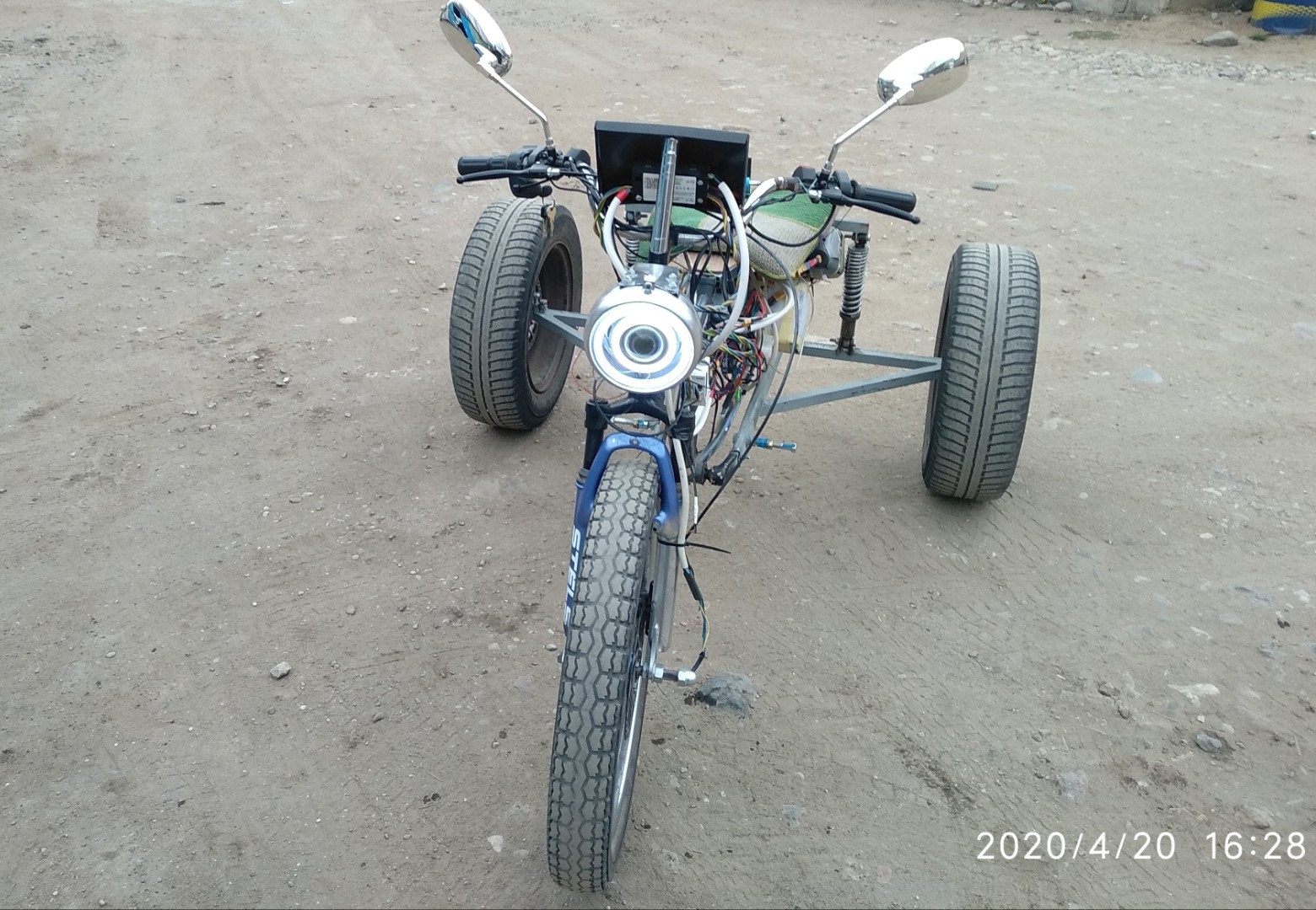 С трехколесным пока подостыл, бо много с ним работы и непоняток в плане легализации. По тротуарам ездить - широковат, по проезжей части нужна регистрация, страховка.... Увидел на Ютубе хлопец из Майкопа сделал простейший байк, ну и я соорудил нечто подобное. Вообще всё элементарно. Без токарки.