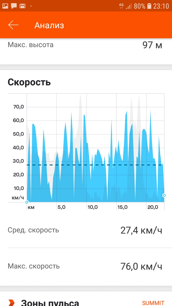 По настройкам - рекуперация, батарейный и фазный ток - всё на 50%. До 50км/час едет очень бодро. Катался по ночному городу с заряженными авто, японскими мото и вполне себе уверенно держался - всех удивляло, что такой колхоз так едет. По максималке упёрся в 80км/час по велокомпьютеру (91 на вывешенном колесе), и при 72В уже падает до 72-75. По gps максималка 76км/час. Трекер записывал покатуху, но почему-то не всю. По велокомпьютеру накатал 34км. Скушало 11-12Ач. Спокойно не ездил, постоянный разгоны-торможения, по трассе 60-70км/час. Спокойно в принципе не получалось почему-то. При торможении рекуперацией колесо пищит на асфальте, но блокируется не полностью, работает как АБС. Контроллер, мотор, фазные провода слегка теплые. Пиково на ваттметре показывало 110А при разгоне, после 50км/час ток падал. Завтра хочу доделать передний тормоз и поехать в горы на кросс-кантрийные велотреки. Заряжаться через БМС Дрима не захотел (на БМС загорается диод, но ток с зарядки не идёт), потому напрямую. Крайние точки выставлены 3.3-4.1В. Схему пробы подключения зарядки к БМС даю во вложении (только зажигание не подключал).