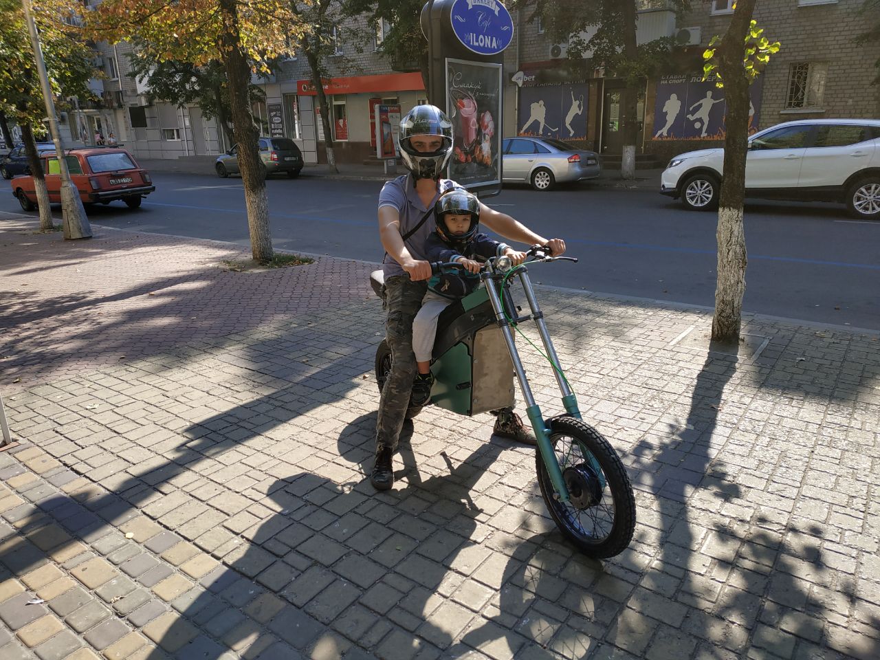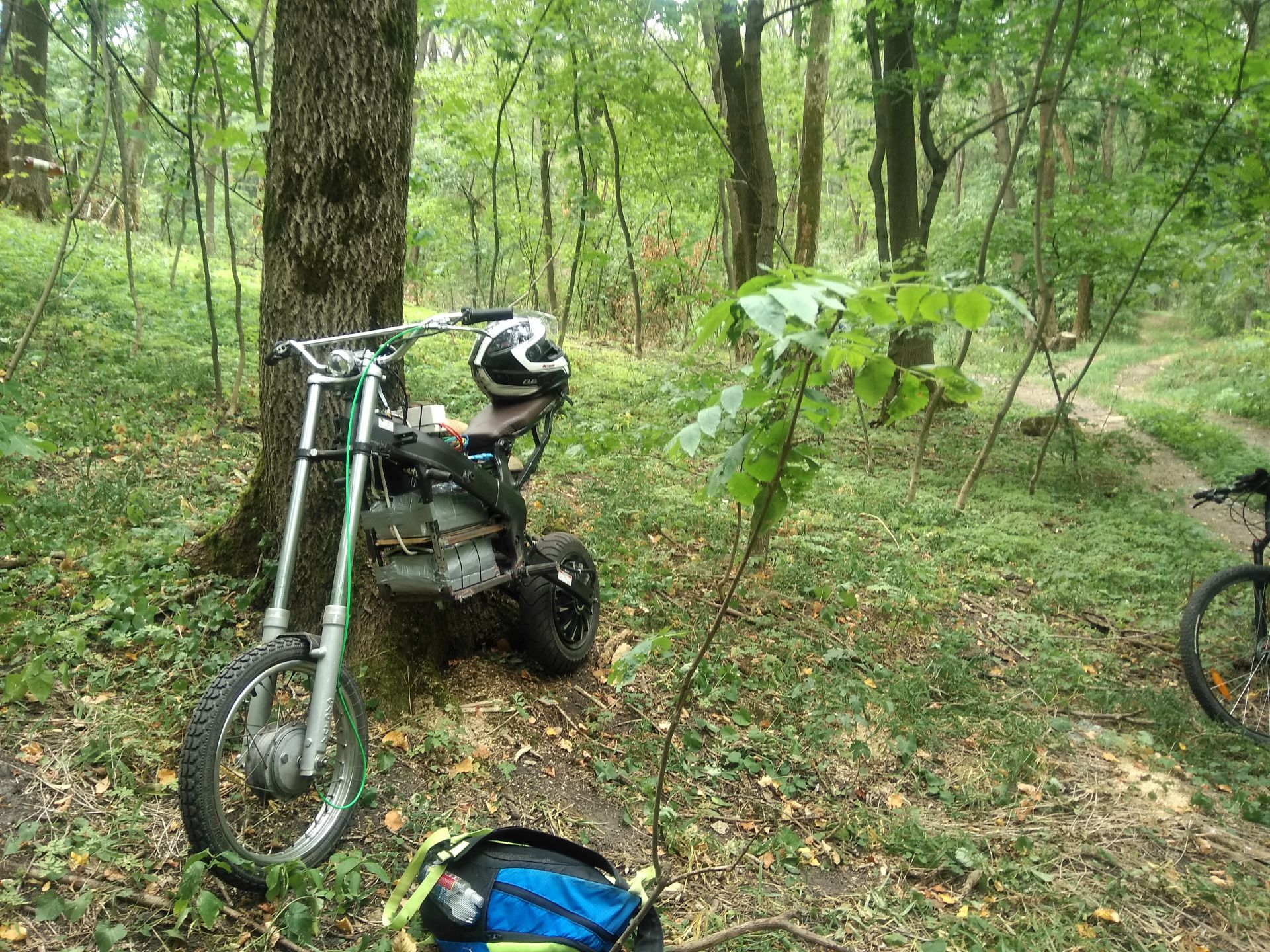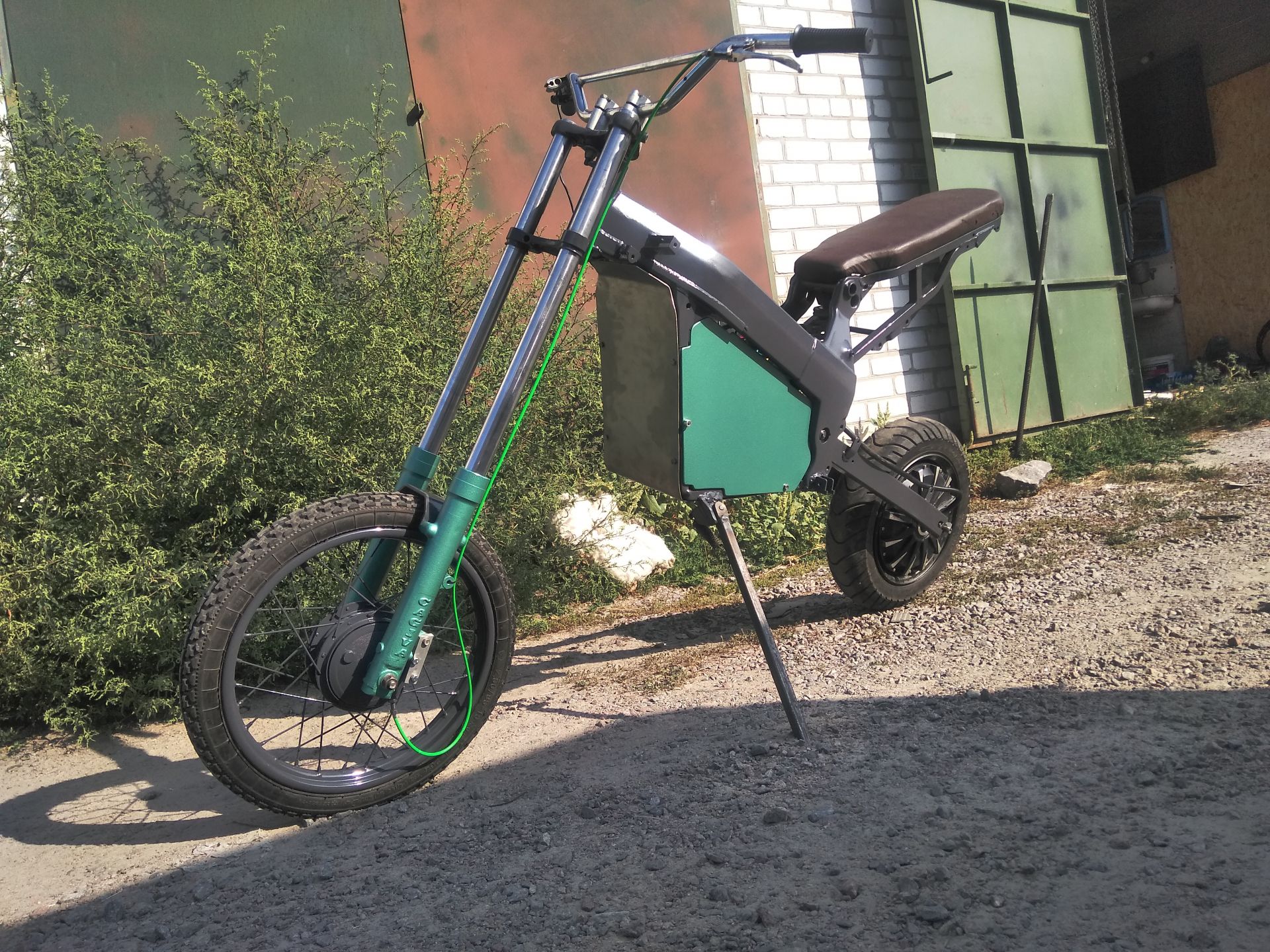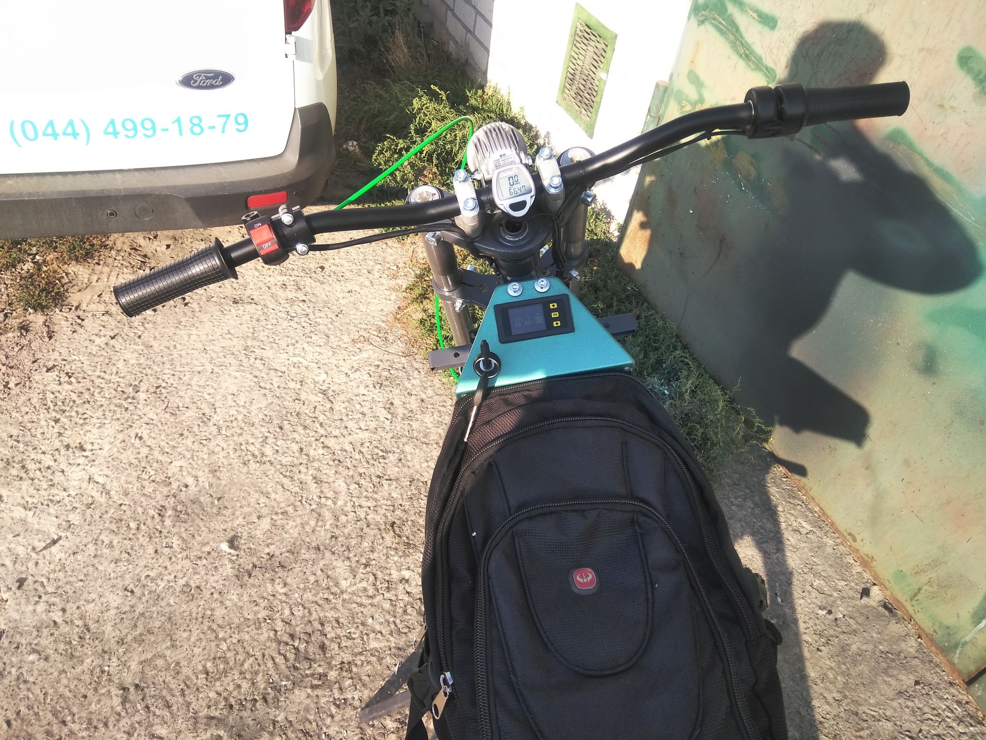 Сегодня были первые покатухи по городу. Точне первые были на прошлых выходных, но не было ещё зарядки, тормозил рекуперацией при отпускании газа и накатал всего 10км. Сейчас убрал плохие соединения в проводке, от батарейки идут провода на 25мм². Стоит один автомат на включение мозгов контроллера и от него резистор на заряд конденсаторов силовой части, на силовую часть отдельно автомат на 125А и один автомат на свет и ваттметр. Пока ещё обкатываю, выявляю основные косяки конструкции, что-то допиливаю. Потому и не покрашен. Вывел ещё кнопку на руль на включение рекуперации/тормоза и сделал чтоб он мог при отпускании ручки газа накатом идти.