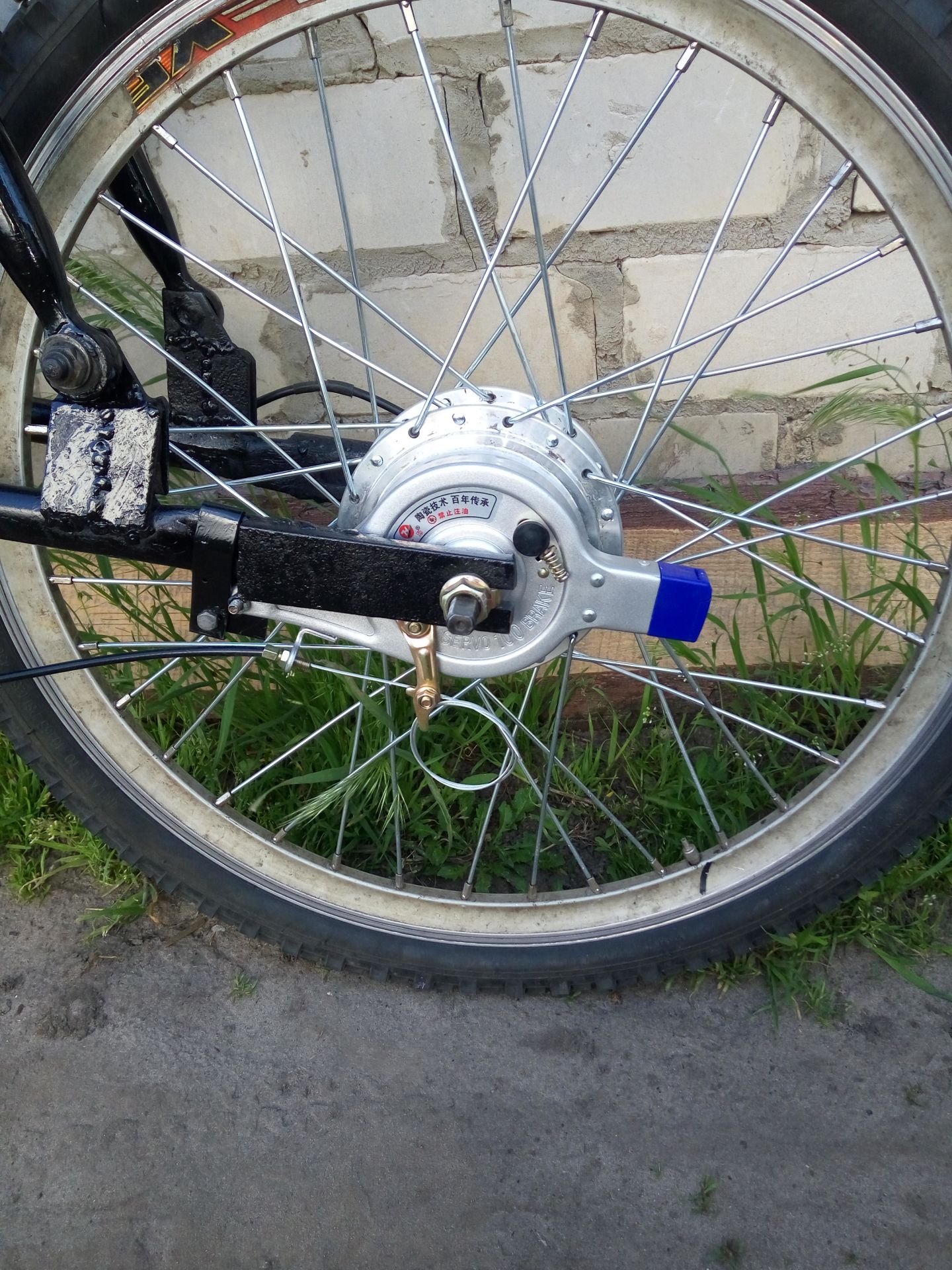 Замінив спиці на заводські 3мм. Встановив задній барабанній тормоз з протиугоном. Тормозить гарно. Вел кожного дня в екслуатації. Заряда хватає на 25км максимум , нам для покатушек вистачає. Перемикач на ручці газу включає 3 швидкість, на ній весь час і їздимо.
