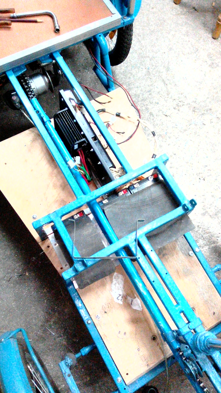 . Контроллеры в среднюю часть , за сидушкой , обоснование- литий это хорошо, но ему уже пойдёт четвёртый сезон , расчитывать на него , особо не стоит. Если ещё будет возить , хорошо, нет, место под свинец будет готово. Расстояние до контроллеров минимальное, высота полика 250 мм. , если в лужу , не выше осей влазить, должно прокатить.Сделал постель под свинец из уголка- люминь. Вырезал из камеры резиновые подкладки, завтра буду заниматься крепежом, хотя эти кирпичи настолько тяжёлые, что вылетят только тогда, когда будет полный переворот, но всё же закреплю.Контроллер на 72 в. , закрепил на обратной стороне монтажной панели. Он туда чудненько вписался. Надо сделать, или откопать в закромах , подходящий клемник. Контроллер с виду по солиднее , даже двух вместе 500 - ок. А вот заработает ли он , пока уверенности нет. Нужны будут промежуточные испытания, прежде чем двигаться дальше.