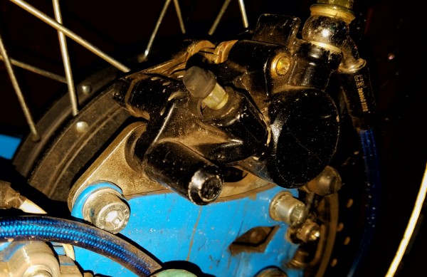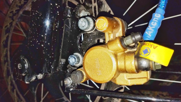 тормозные суппорта скутерные. Передний закрепил с помощью уголка. Своеобразный адаптер со стандарта PS на IS.