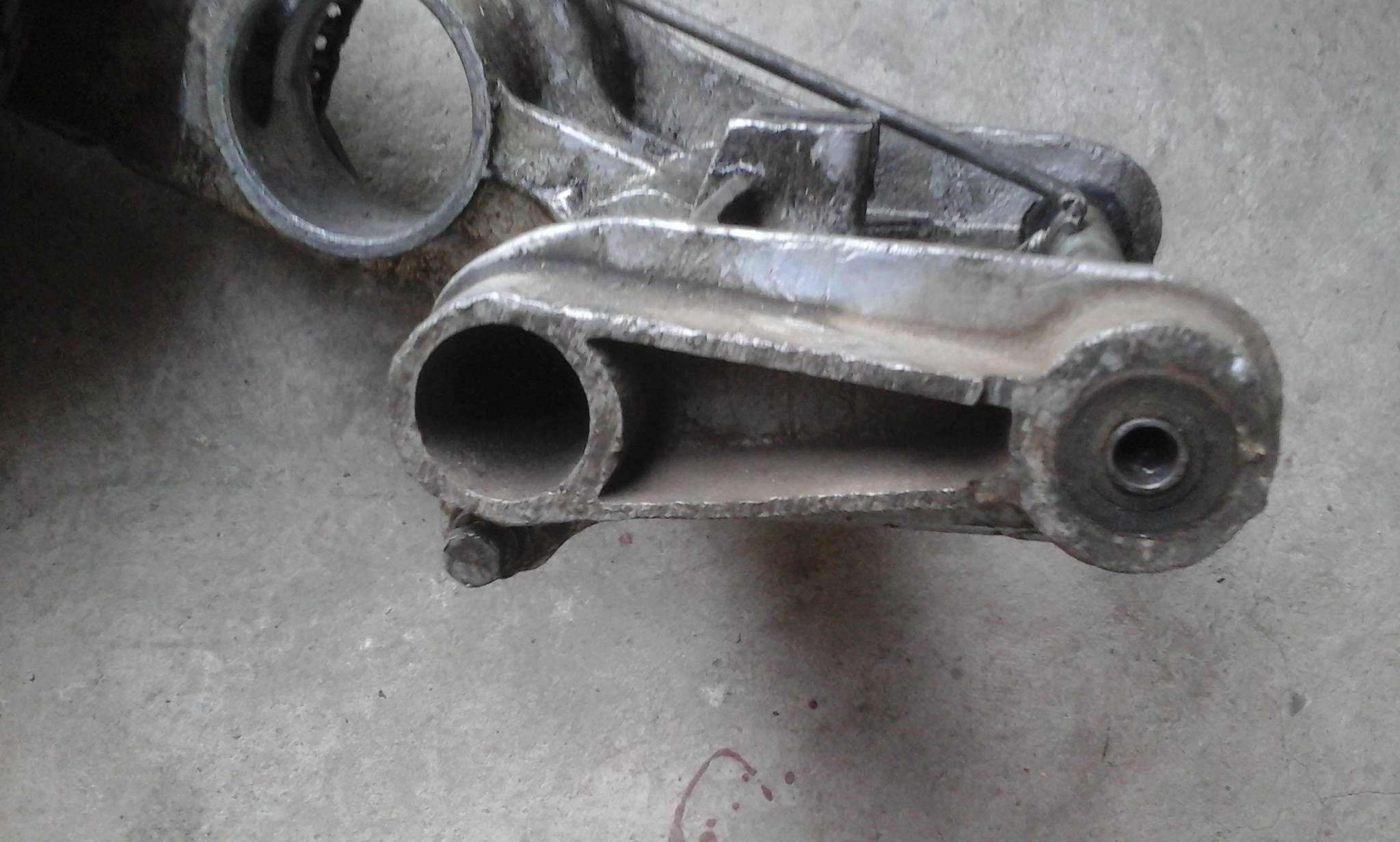 Буду думать как поставить привод на снятую вилку и применить существующую цепную передачу на заднее колесо. Хорошо что старая рама алюминиевая. Можно легко резать ножовкой и точить напильником.