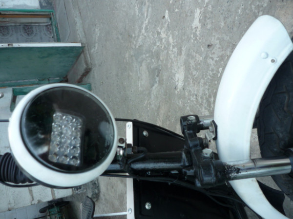 Прошла неделя с момента продажи моего самоката "Иваан Кожедуб" и "зачесалось" из хлама, без дела лежащего, создать еще что нибудь электро-само-ездящее... За основу взял остатки от скутера - это передок от рамы с вилкой. С рамы было срезано всё что по моему мнению "утяжеляет конструкцию" и "не пригодится"... На разборке приобрел переднее колесо 12" с покрышкой. Мотор-колесо было куплено "по случаю" на ОЛХсе пару лет назад. Родной его цвет - зеленый. Покрасил чтобы было одинаково... Было оно с вилкой и стоило аж 1000 гривен, поэтому как "истинный фанат шары" не смог "пройти мимо".... Вот и настал его черед. Не знаю что это за колесо (если кто знает-подскажите) и какой оно мощности....Но рабочее.