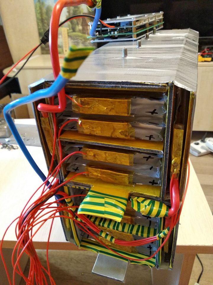 В угоду надежности сборки решили делать акум неразборный. Тоесть скотчи, двухсторонные и армированный... Классика. Жестким материалом по краям и перемычки между 4-мя пакетами делались из композитного материала Alukobest (алюминий-пластик-алюминий). Получается низкий вес, и хорошая жесткость.