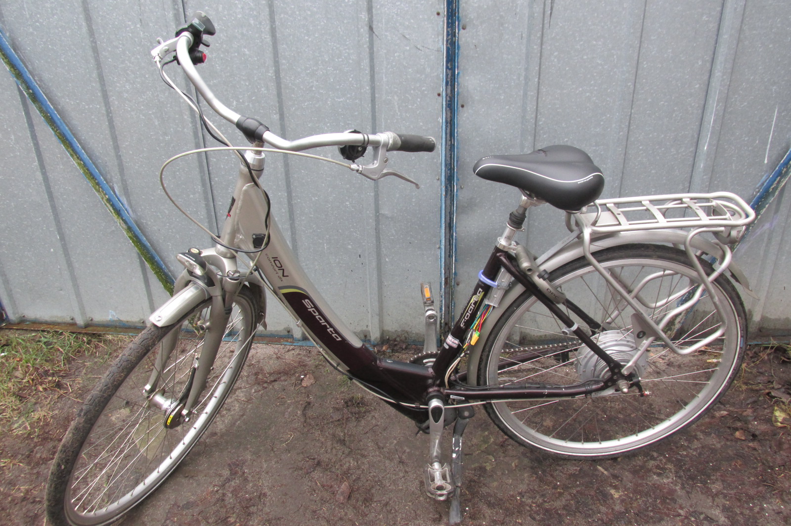 Легка алюмінева рама, резина швальба ( хватить і внукам), усилені колеса, силіконове сідло ( хоч і репнуте але класне) з підсидельним амортизатором), міцний алюміневий багажник, фара і стоп. Рама унісекс, на світофорах і при екстремальних зупинках чол гордість не травмована