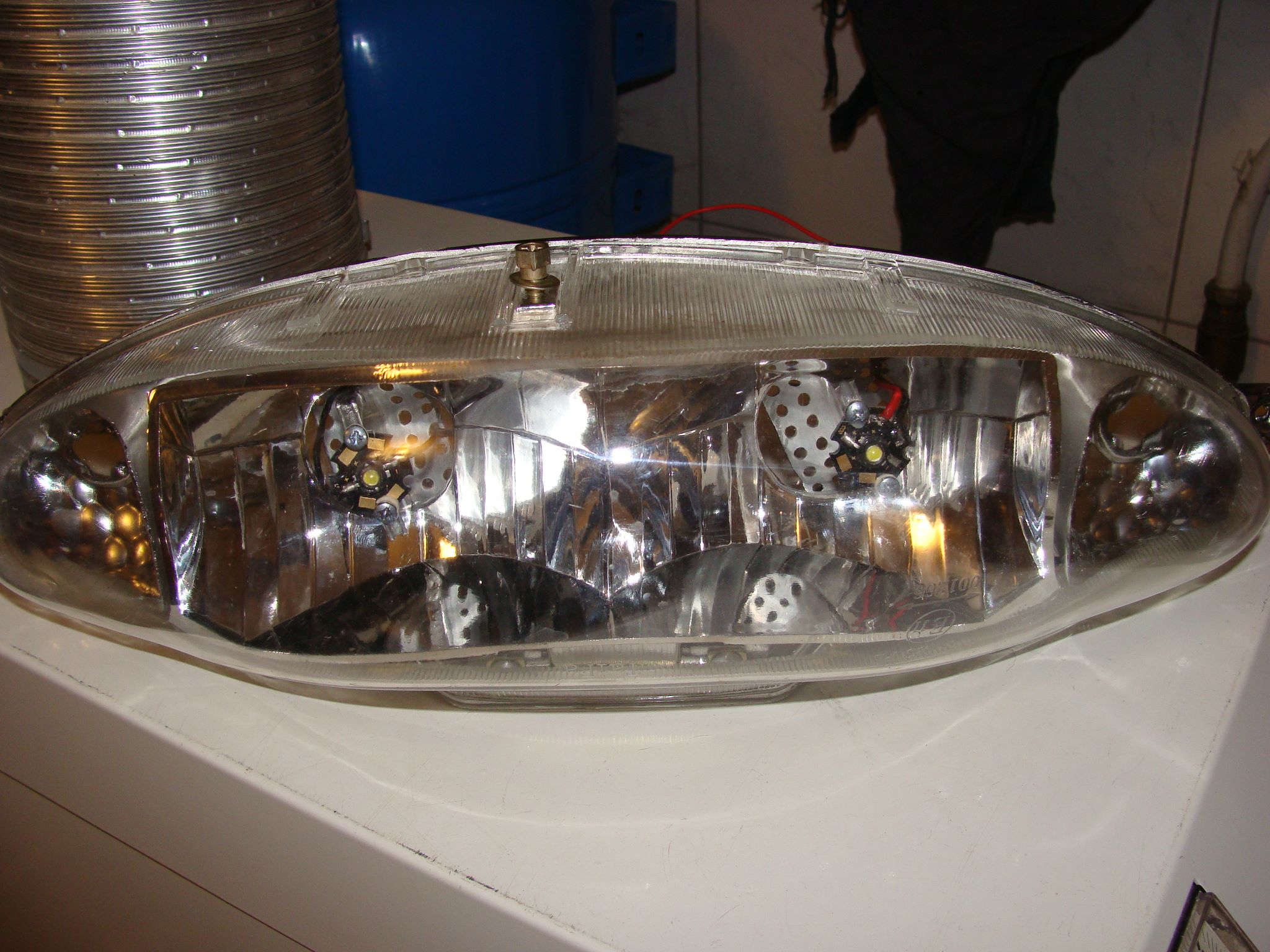 Стояли 2 лампочки по 35 Вт. Ток потребления составлял 6 А при 12 В.