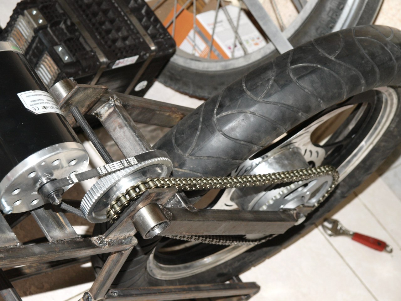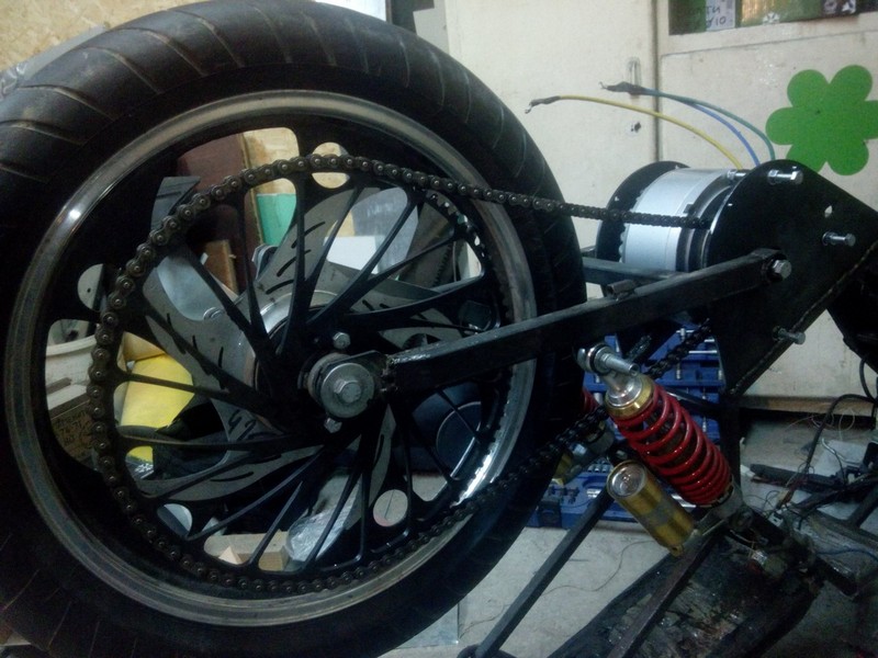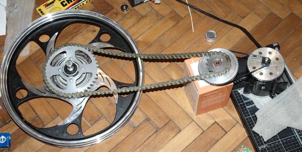Після цього було вирішено придбати ще один такий мотор і комутівати їх послідовно-паралельно пакетником. Тяга - швидкість. Спершу ланцюг дав один на дві ведучі зірки
