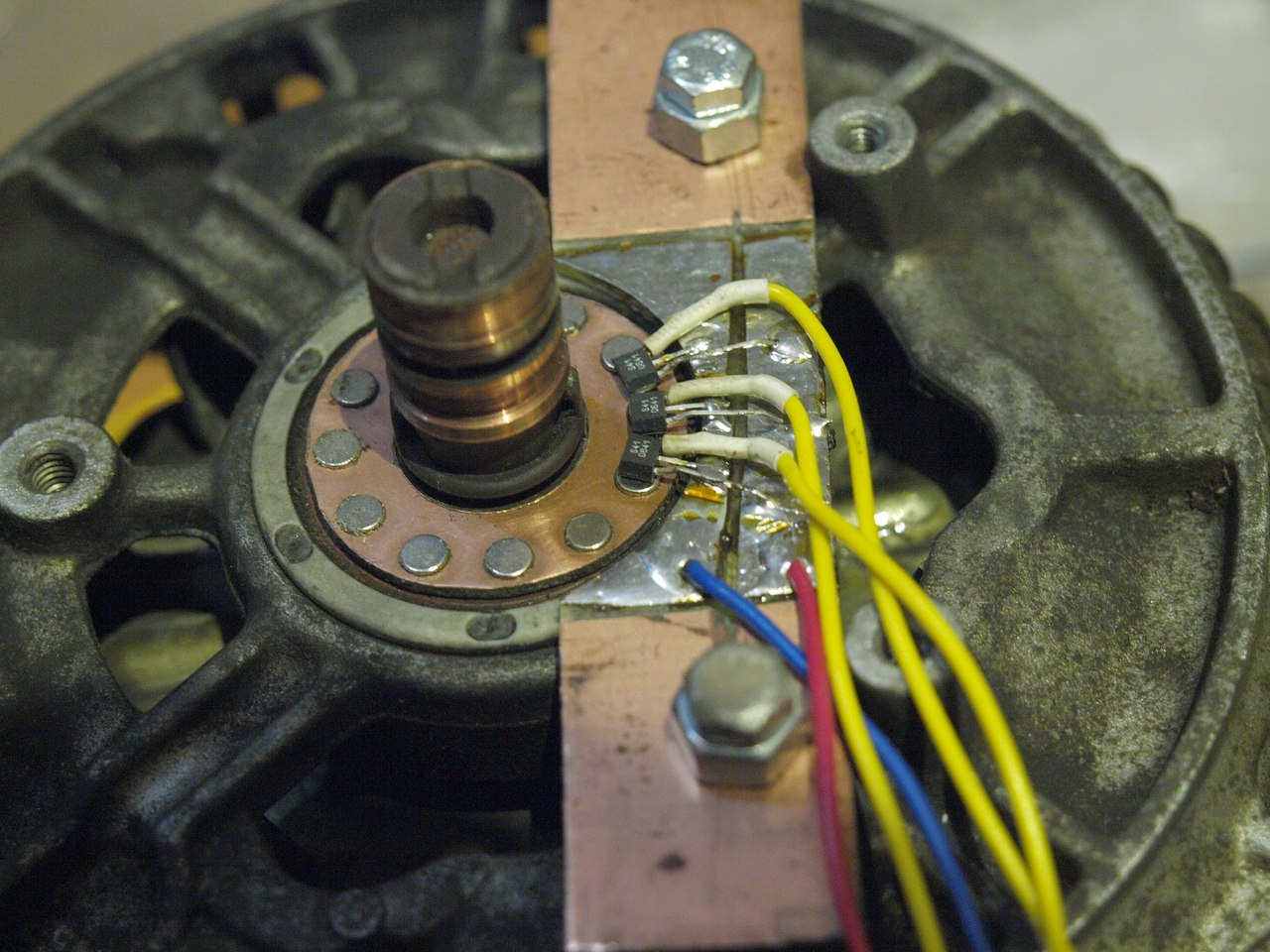 Далі почались інтимні ігри з генератором. Спершу включив його з рідною обмоткою збудження, встановивши фальшротор для датчиків хола.