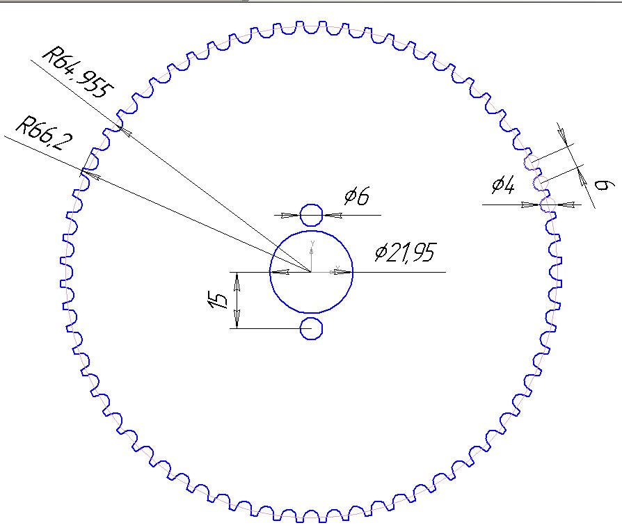 Великий шків вирішив робити композитний. Несуча частина металева, а профіль для ременю з поліпропілену. Шків на 125 зубів. одночасно в зачепленні коло 70. Сила розподіляється рівномірно ) Хоч і малював профіль правильно, беручи інформацію з даташиту, перед виготовленням відповідальної частин все ж вирішив виготовити на ЧПУ оригінал-макет.