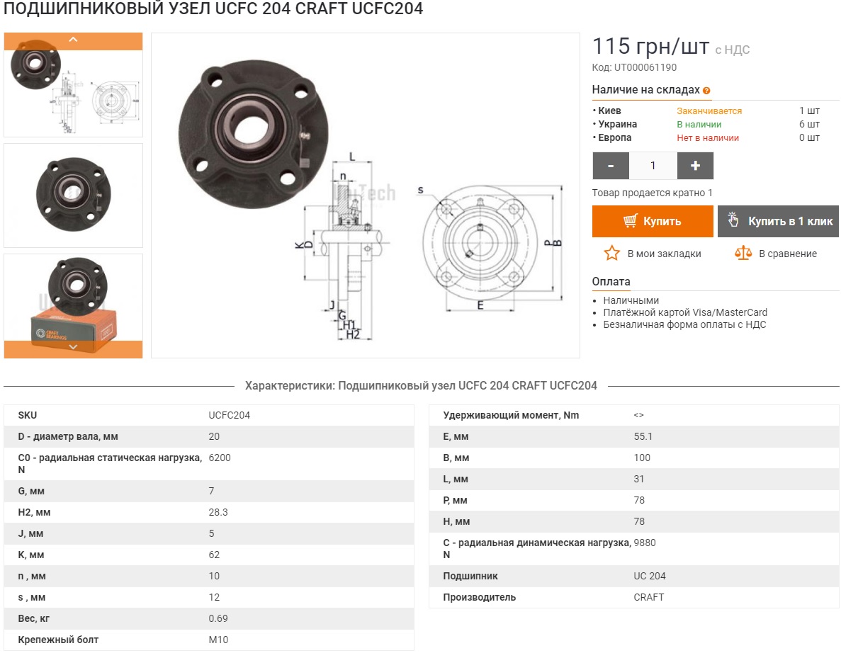 В сам кінець знайшов досить дешевий варіант: фланець з підшипником CRAFT UCFC204. Аж 115 грн)) Замовив два. Потім до нього думаю прикрутити або приварити зірку. Буду пробувати.