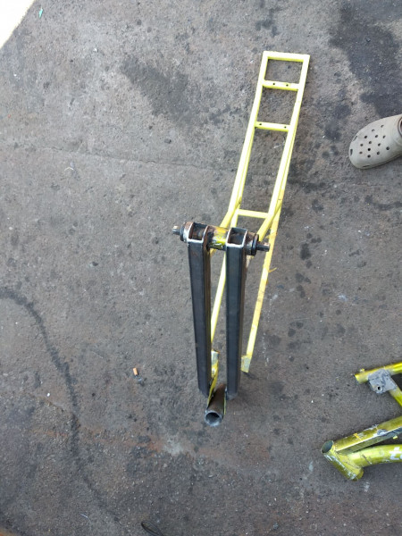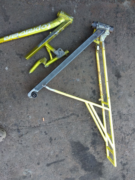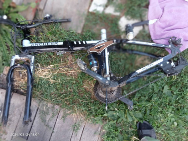 В общем у нього навіть сідло нормально не трималось трубка була під зігнута і першим же заходом до нього була зварена така рама підрамник і сідло тримається і батарейка і кофрик притулився і в цілому воно виглядало цілком ззовні.