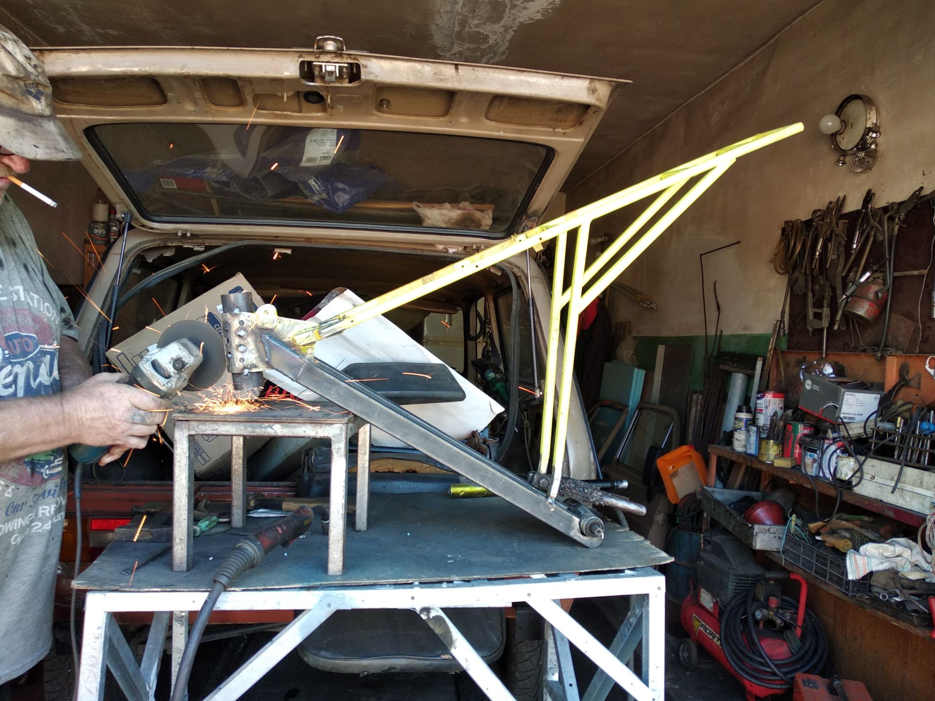 В общем ось фото як воно стало виглядати після першого швидкого абгрейду --- додавання цього верхнього підрамнику з квадратної труби. До речі він був повністю на затискачах не був приварений до рідної рами.