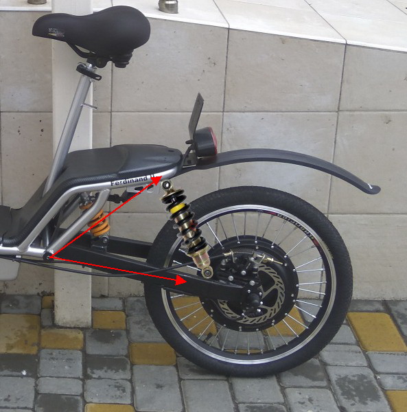Если предположить что задний маятник может вращаться вокруг своей оси, то места крепления амортизатора (верхнее и нижнее ухо) должны совпасть в одной точке. Тогда амортизатор будет работать только на сжатие и отбой, а не на изгиб, кручение, срезание и т.д. При таких не правильных нагрузках амортизатора, его сальники, поршня, втулки, прокладки и все что там еще есть быстро выходит со строя. Амортизатор рассчитан на движение только вдоль своей оси.