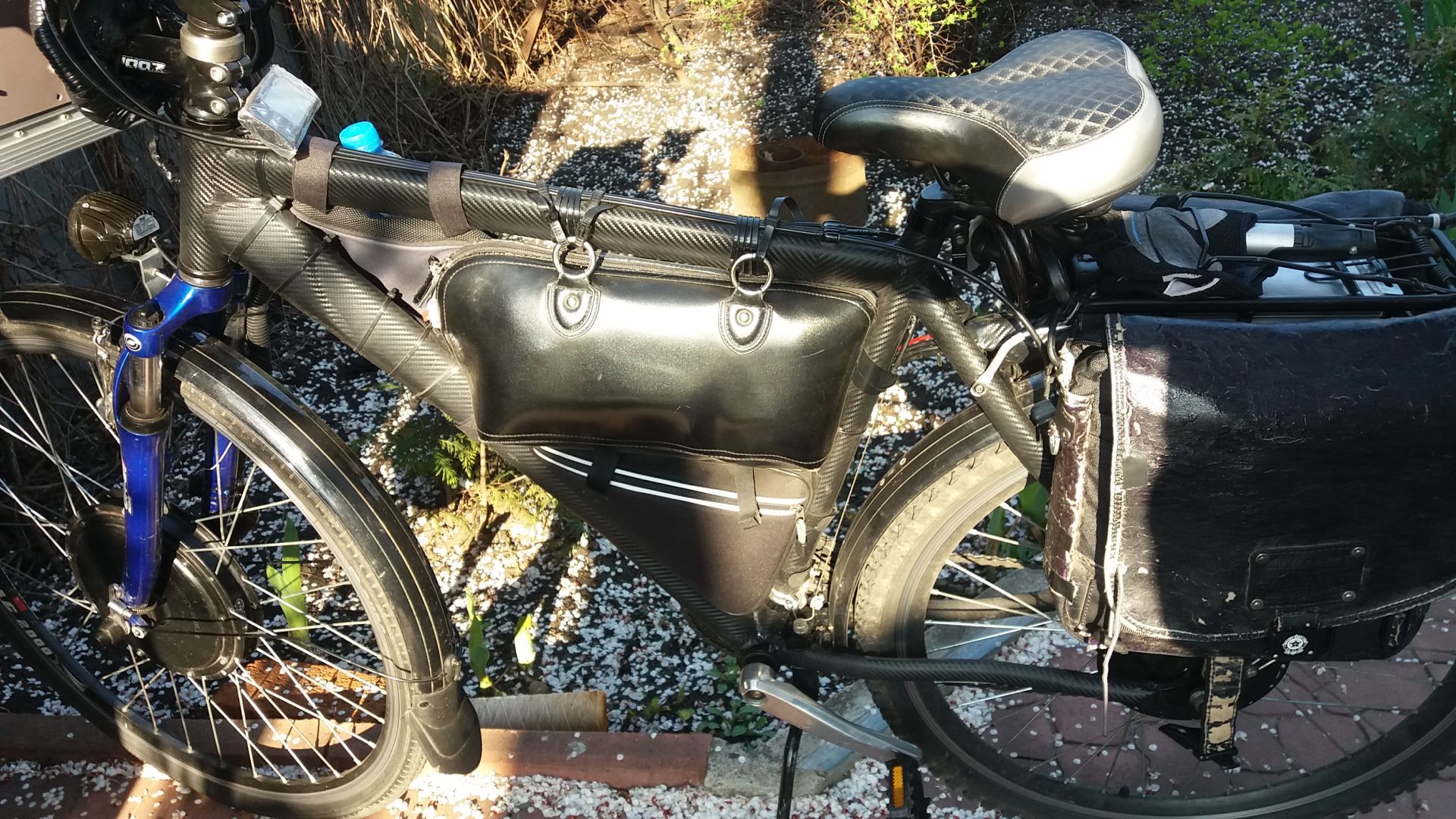 Я решил АКБ в сумке возить, в раму как родная подошла женская кожаная сумка :ups: