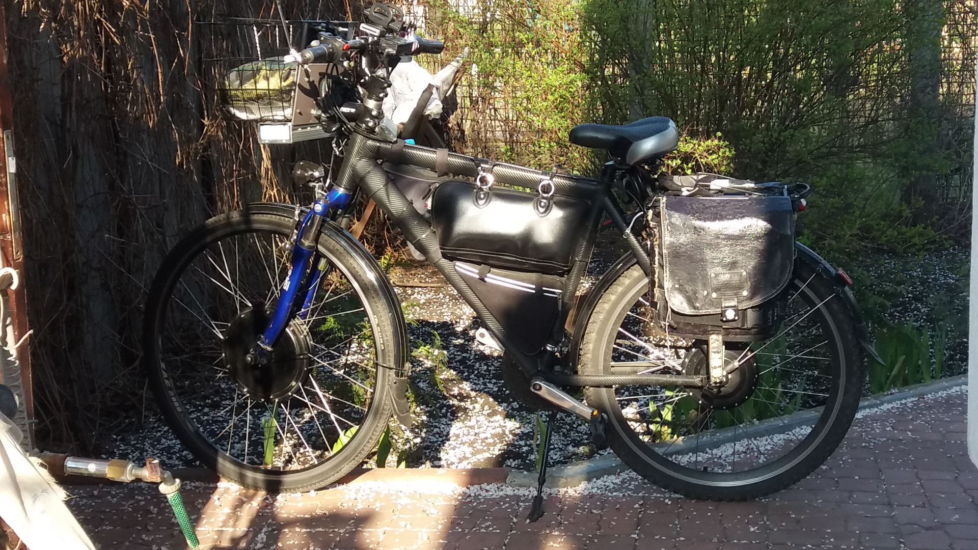 Вот если соберусь себе любимому строить по мощнее тогда и двухподвес будет актуальнее, хотя не уверен что не решу сразу мотоцикл строить. Батарея прямоугольной формы с возможностью крепления на багажник скорее всего устроит- два из четырёх велосипедов с "женской" рамой.
