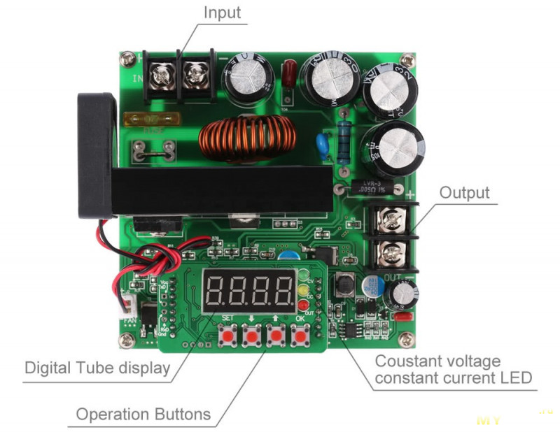 Эффективность преобразования: 92%-97% (эффективность связана с входным/выходным напряжением, сила тока и напряжения. Чем меньше разница, тем выше эффективность будет)
