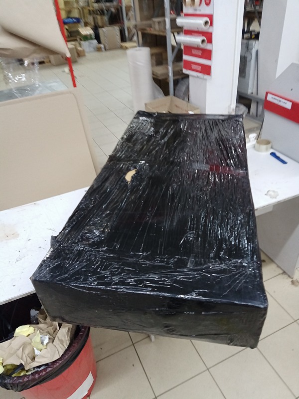 Электровелосипед поставляется в довольно здоровой, но плоской картонной коробке, примерно 1.2м длиной. У коробки есть на торцах прорези-ручки, но под стреч-плёнкой парнишки на выдаче их не увидели, страдали в попытках обхватить необьятное :ugly: . Но я-то — воробей стреляный...
