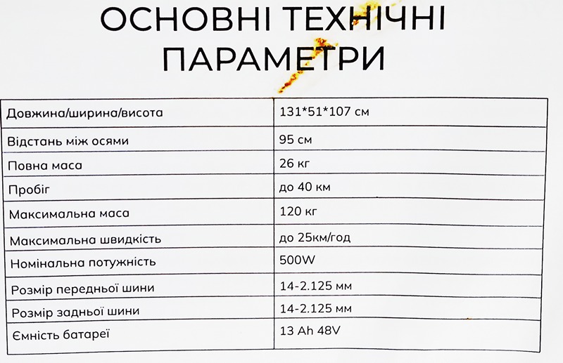 Естественно, никаких реальных сведений по именно этой модели, не нашлось. Судя по фото — "усреднённый" китайский поджопник. Но, в данных заявляют про "500 Вт мотор" и про "624 Вт*ч батарею", а также макс скорость "40...45", что несколько нетипично для самого бюджетного диапазона.