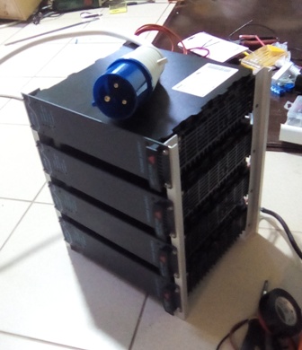 Пока собираю деньги на Бенинг, решил собрать зарядное и того что было под рукой. Четыре элтека SMPS 1000 последовательно и вот готово. Тяжелая, но мощная получилась. Включал пару раз по 10 минут. Батарея наполовину уже заряжена. :hurra: После 8 часовых зарядок свинца это фантастика!!! Правда надо перенастроить на меньший ток. Боюсь 4кВт проводка не выдержит. Провода греются. Да и сами блоки питания очень горячие. В холодное время года будут помогать обогревать комнату. Зачем добру пропадать?