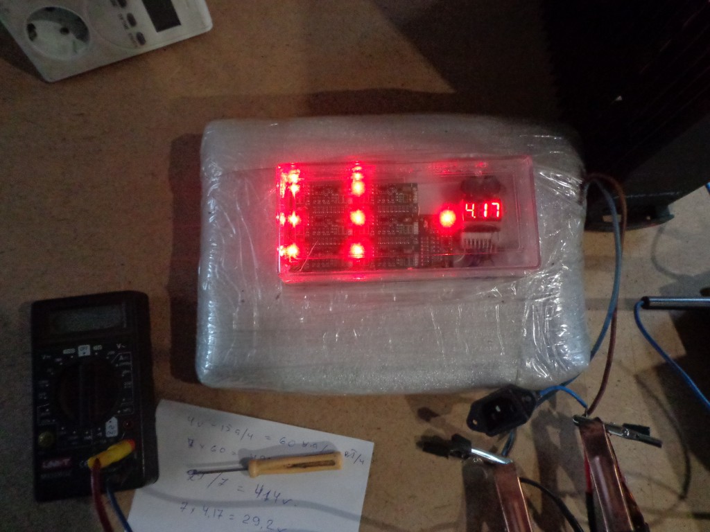 Хочу рассказать еще об одной помощи,на этот раз ребенку с врожденным недугом... Малышу,который не может без посторонней помощи передвигаться и проживает недалеко от нас досталась электро-коляска. Мать купила два AGM АКБ 26А/ч и обратилась к нам за помощью зарядки к ним,в чем мы ей и помогли...но через пол-года один АКБ вышел из строя,а по гарантии только предложили возврат денег... Посоветовавшись с коллегами по форуму было принято решение поставить li-ion батареи фирма LG емкость 16А/ч, была собрана батарея 7S1P,поставлены балансиры и индикатор-сигнализатор напряжения на элементах АКБ. Зарядку поставили Элтек с напряжением 29,2в(с довольно высоким КПД с сети 348Вт,на АКБ 322Вт). Начальный ток заряда 13А, за 1,5часа балансиры всех ячеек зажглись - полная зарядка,при этом элементы абсолютно не грелись. При тестовом режиме заряд-разряд(4,17 - 3,3в) АКБ "взяла 366Вт/ч,и отдала 348Вт/ч" что в таком режиме не очень отличается от расчетных 420Вт/ч В преддверие Нового Года коляска,которая стала значительно легче - была передана малышу. Огромная благодарность от малыша,его мамы и от меня - Кузьмуку Григорию, Логвину Юрию и остальным ребятам,за оказание волонтерской, технической и теоретической поддержке. :10balov: (видеоролик будет позже)