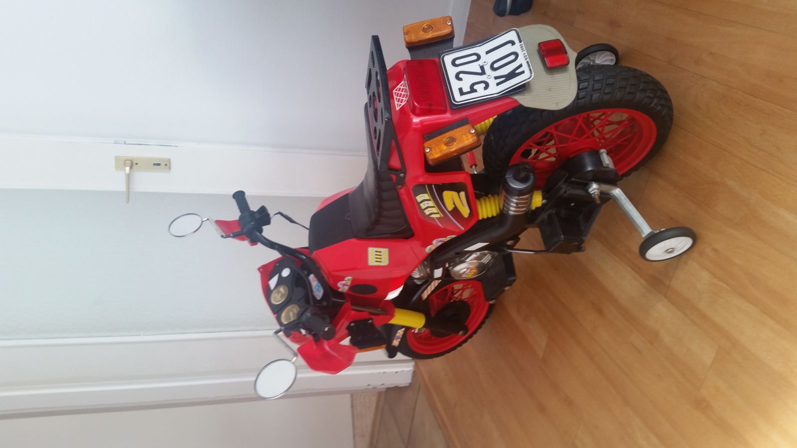 Предложили мне знакомые один э-байк для детей с 7ми лет с макс скорость 10-12км/ч. Ребенок вырос, а свинцовой 12В батарее капут. Моему старшему 4,5 года, хоть он и любит быстро ездить, но для него многовато, покрайней мере в первое время.