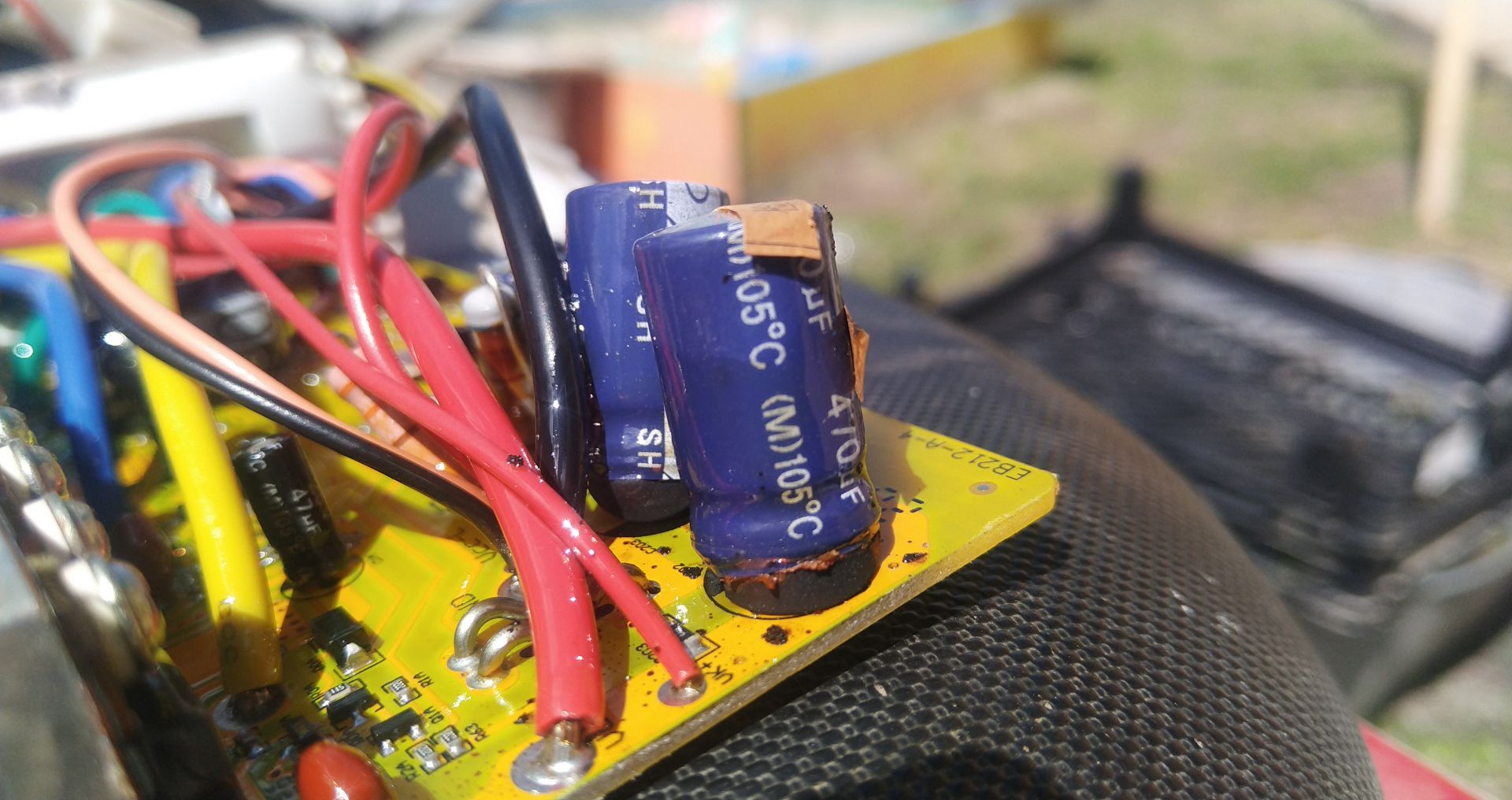 Насколько я понял, поменять конденсаторы с 63v 470uf на 100v 470uf. На плате есть 2 синих стреляных, и один чёрный, визуально адекватный, замену производить одновременно троих?