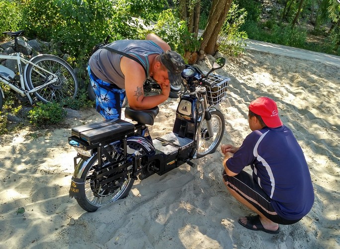 Даний тип вилки в електровелосипедах, починає хоть якось працювати, коли в корзину поставити вантаж ~ 5-10+ кг. У мене є Benlin XCG 450W 60V, а також був TAILG 350W 60V (без зовнішніх пружин), там ідентичні вилки. На TAILGі були відсутні пружини і без пружин вилка набагато краще ходила, я зверху руками просто натискав і вона ходила. На Benlini, стоять зовнішні пружини, які штопорять хід вилки. Один раз із батьком перевіряв: я зжав пружину, а батько натискав на передню вилку, то вилка ходила. Те, що вилка має хід, також видно, бо лишається слід 4-6 см на пері вилки від якоїсь мазути чорної.