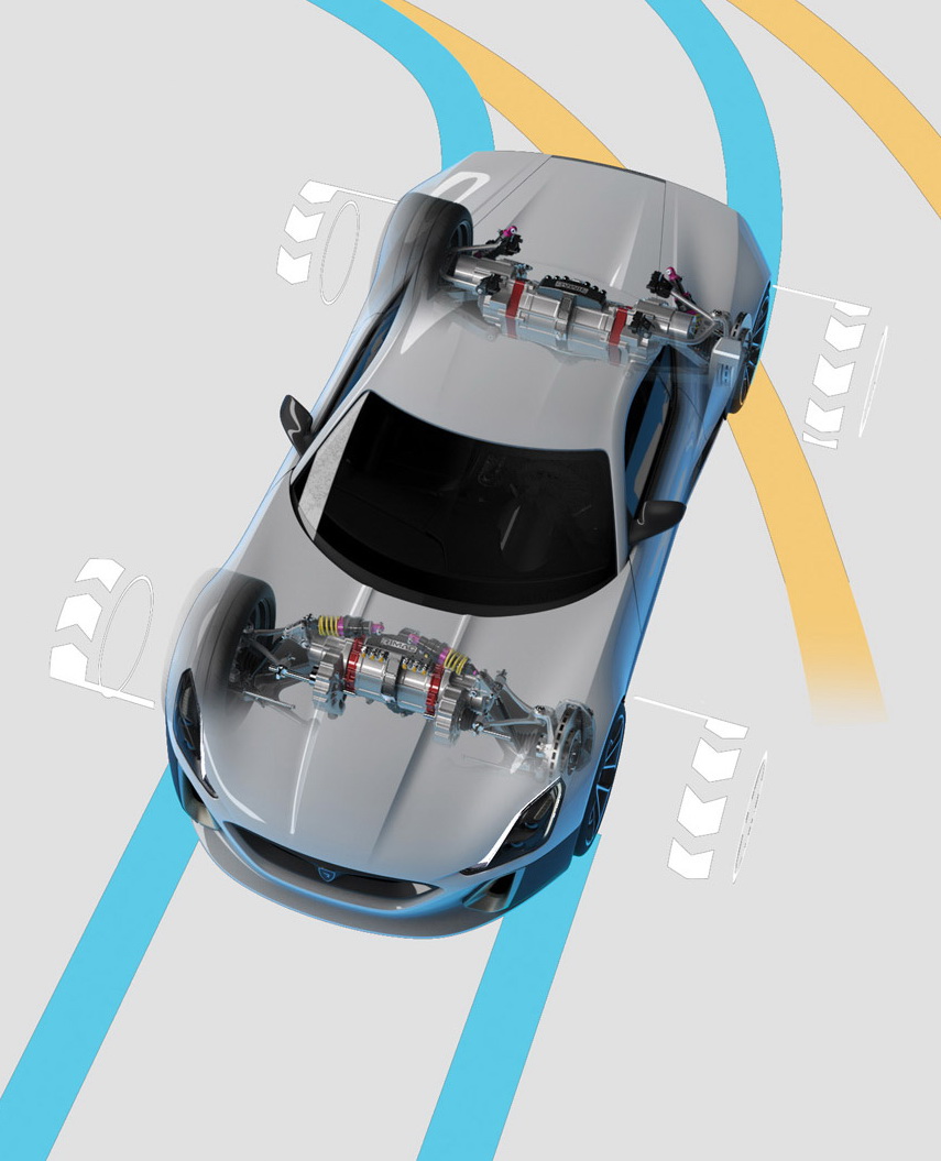 крутящего момента (AWD with torque vectoring control). Максимальная мощность составляет 2000 л.с.